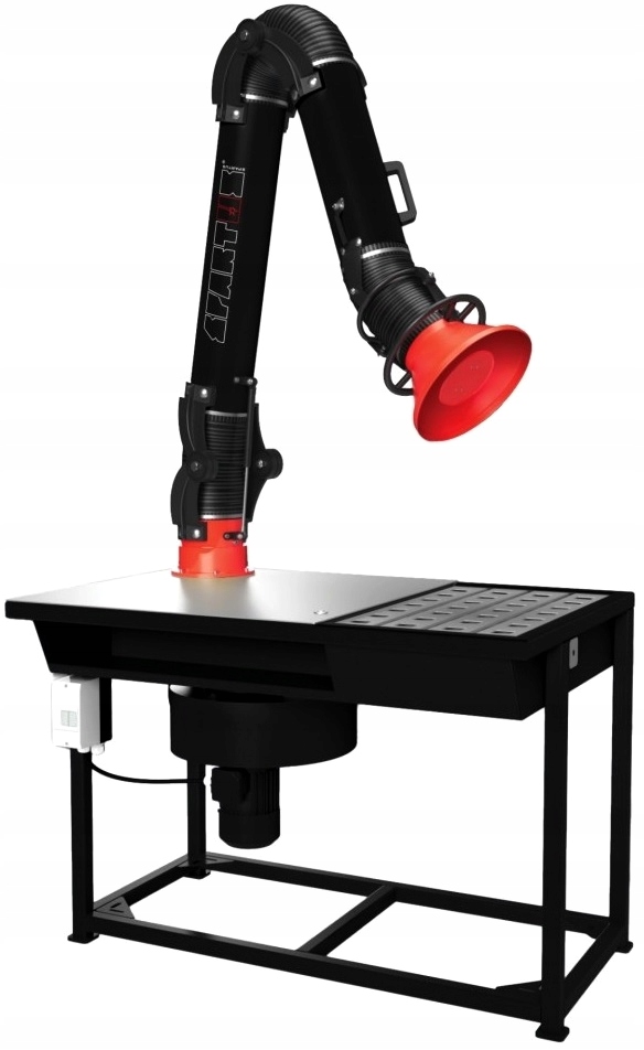 Stół spawalniczy SPARTUS® z odciągiem zapewnia efektywną ochronę przed zanieczyszczeniami powietrza, które pojawiają się podczas spawania oraz różnorodnych działań warsztatowych. Jego konstrukcja opiera się na spawanych profilach kwadratowych. Stół wyposażony jest w system dolnego odciągu z rusztem oraz złącze do pionowego ramienia odciągowego i wentylator TR075 z wirnikiem aluminiowym. System odciągania, zarówno dolny jak i ramię odciągowe, posiada oddzielne przepustnice do regulacji przepływu, co pozwala na elastyczne zarządzanie odciąganiem zanieczyszczeń. Wentylator TR075 skutecznie usuwa zanieczyszczenia i przekierowuje je na zewnątrz warsztatu, wymagając podłączenia do zewnętrznej instalacji wywiewnej. Blat stołu pokryty przewodzącym zabezpieczeniem antykorozyjnym, umożliwiającym łatwe podłączenie przewodu masowego z obu boków stołu.