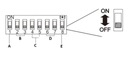 Pożądany poziom wilgotności i czas działania wybiera się za pomocą 8 przełączników DIP. Każdy przełącznik typu dipswitch ma dwie pozycje ON(1) i OFF(0).