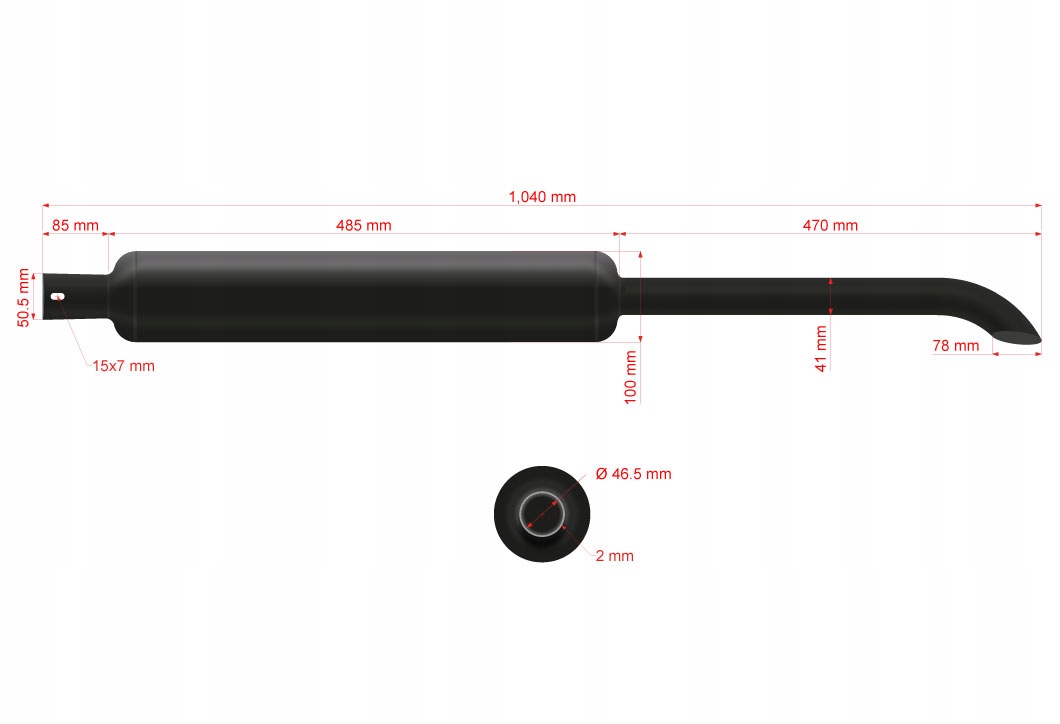 Tłumik okrągły emaliowany, nasadzany L-110 cm, Zetor; 951405 ZE30-034
