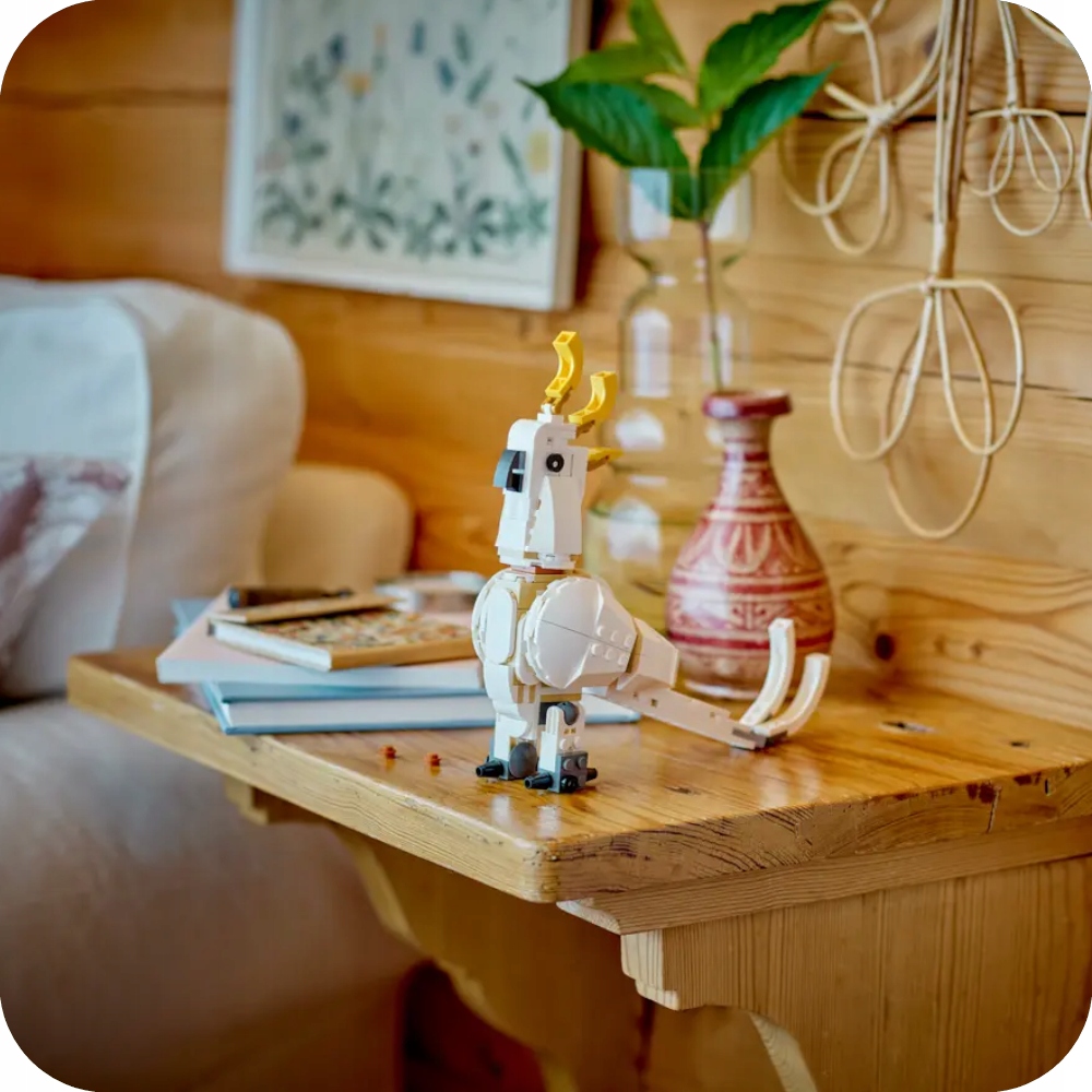 Miłośnicy LEGO® i wielbiciele zwierząt będą zachwyceni zestawem Creator 3 w 1 Biały królik, który można przebudować i stworzyć uroczą papugę kakadu lub białą fokę.