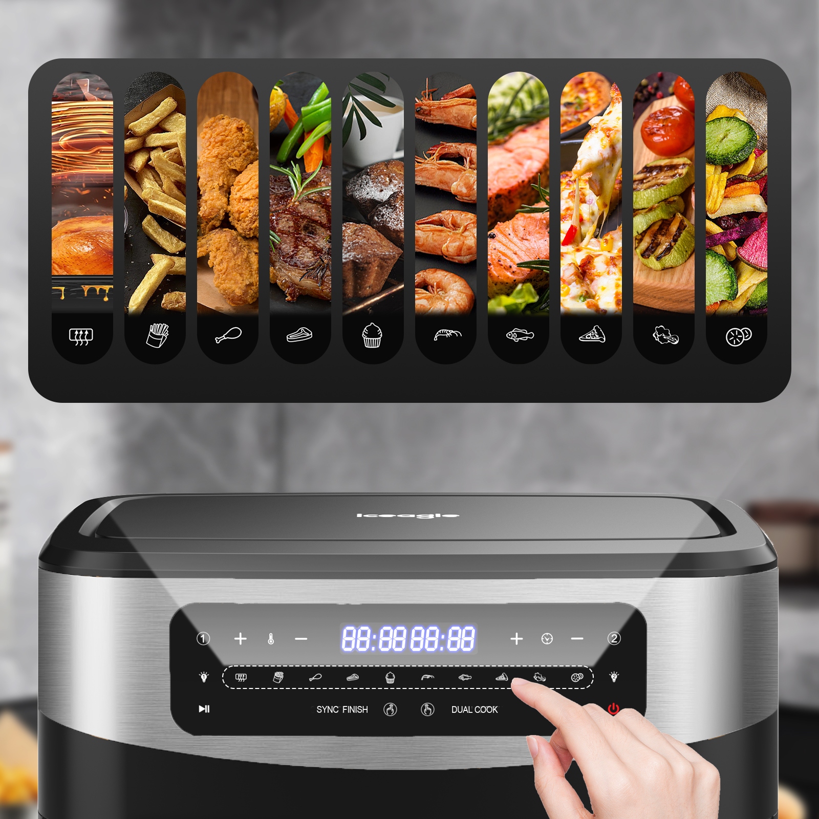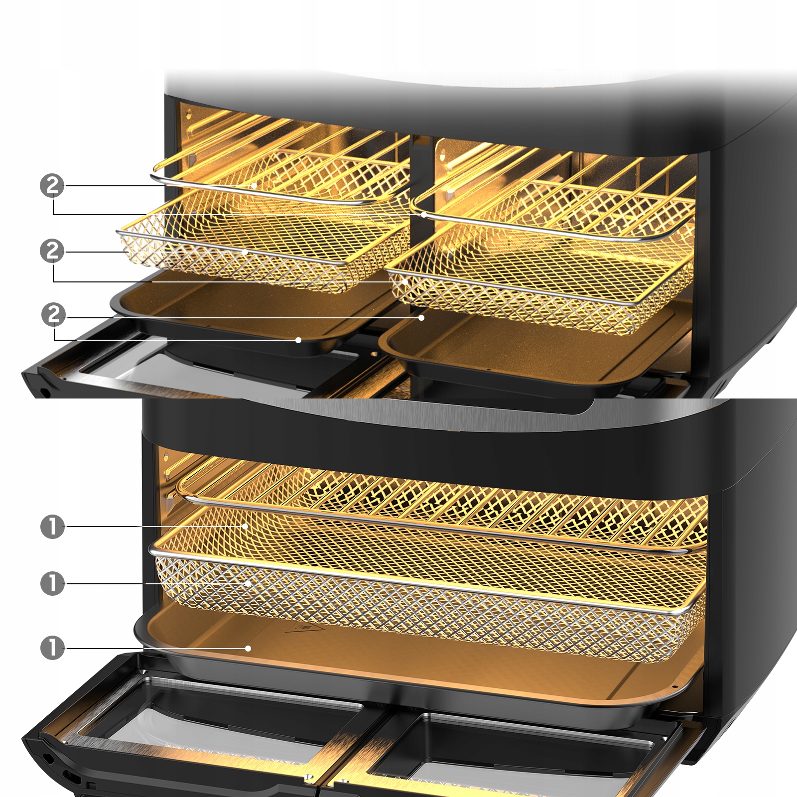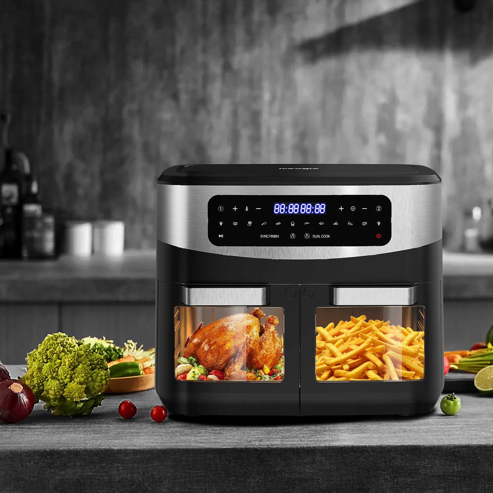 2 независимые корзины для жарки: Приготовьте два разных блюда с разными функциями, временем и температура в каждой корзине