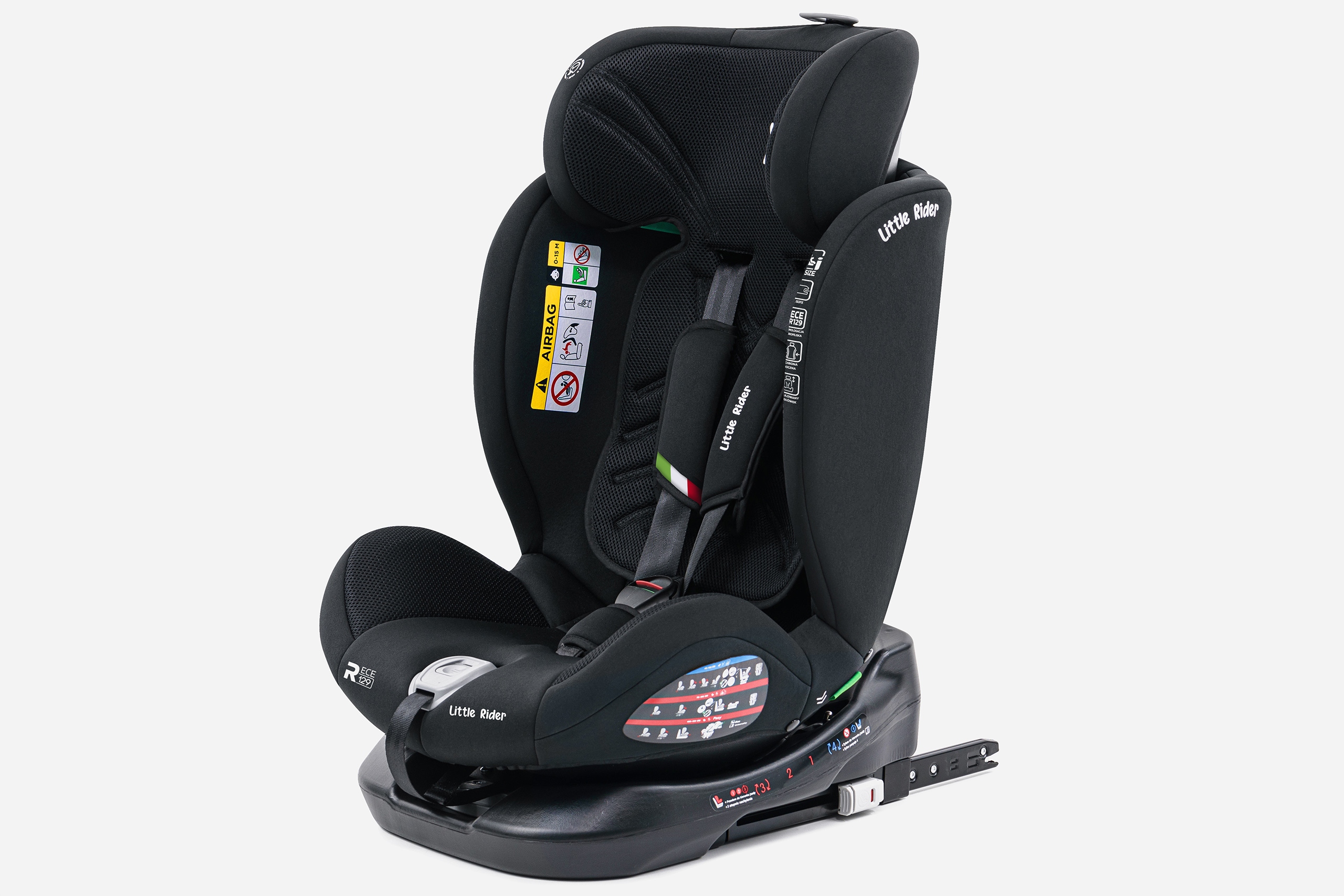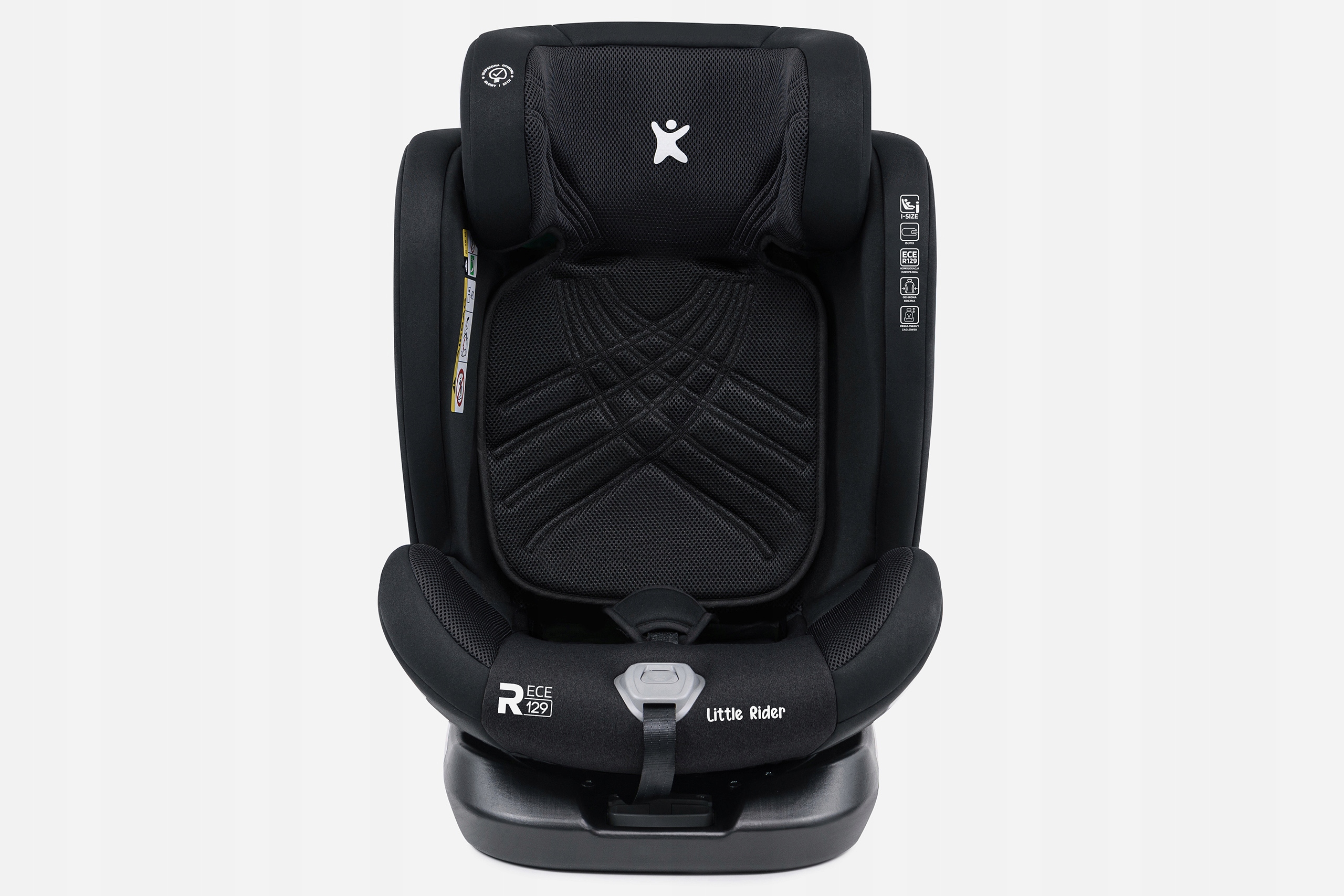 Сертифицированное автокресло LITTLE RIDER, совместимое с последним утверждением и размером для ребенка от 40 до 150 см в высоту. Автокресло оснащено поворотным сиденьем на 360° и в крепление Isofix Top Tether.