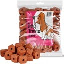 Waga opakowania to 500g, co pozwoli na dłuższą radość Twojego pupila. Treserki mięsne Mersjo są odpowiednie dla psów wszystkich ras i rozmiarów.