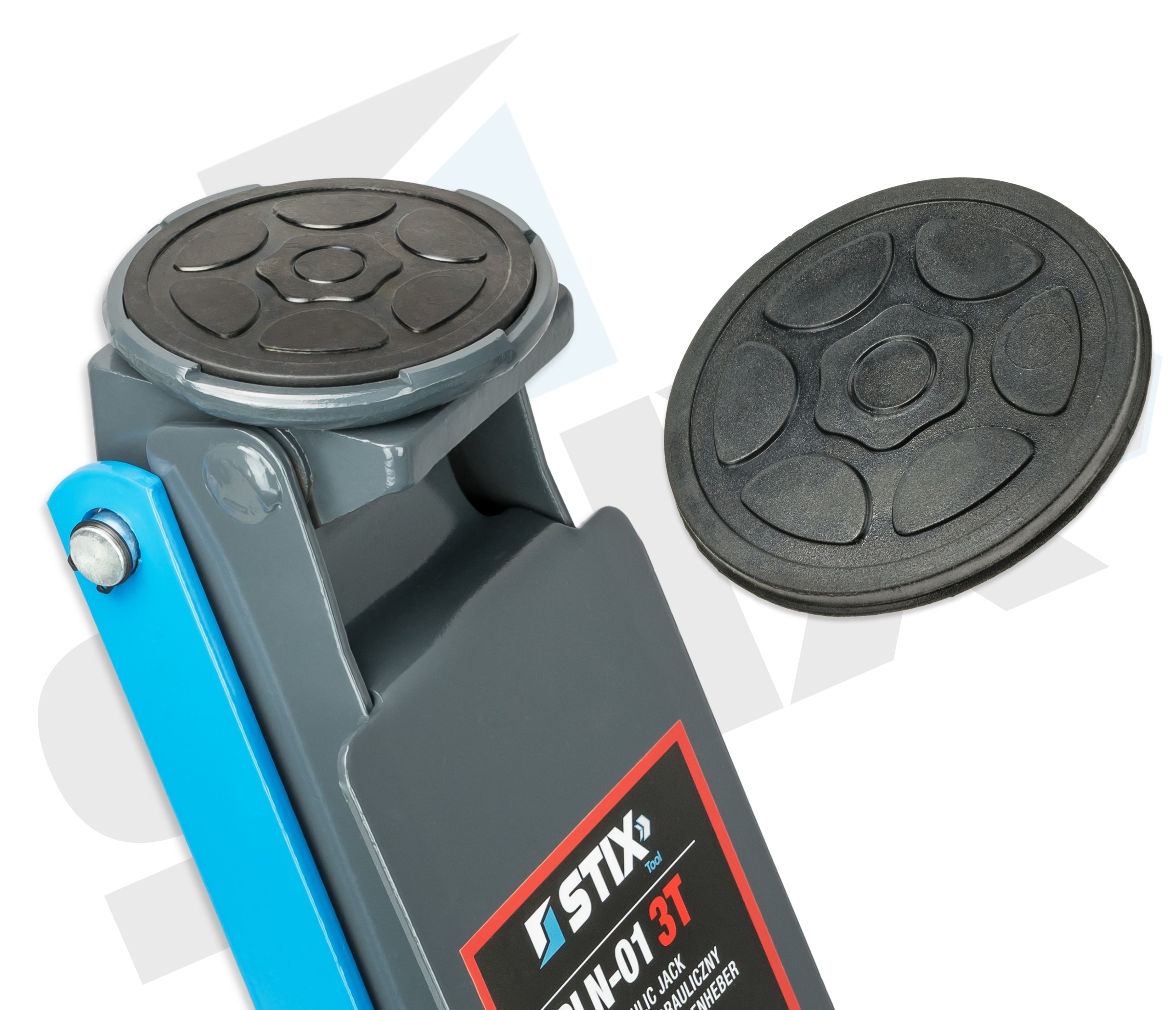 Model PLN-01 posiada minimalną wysokość roboczą wynoszącą 75 mm, co umożliwia wsunięcie podnośnika pod pojazdy o niskim prześwicie, takie jak samochody sportowe. Dzięki wyprofilowanej konstrukcji i gumowej nakładce, podnośnik nie tylko umożliwia łatwe wsunięcie pod pojazd, ale także chroni progi i elementy nośne pojazdu przed uszkodzeniem.