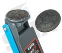 Podnośnik wyposażony jest w wydajny siłownik hydrauliczny, który zapewnia płynne i szybkie podnoszenie pojazdów. Zawór spustowy jest sterowany obrotowym pokrętłem, co zapewnia płynne, precyzyjne opuszczanie pojazdu bez potrzeby używania dodatkowych narzędzi. Taki system umożliwia pełną kontrolę nad procesem opuszczania, minimalizując ryzyko niekontrolowanego opadania.