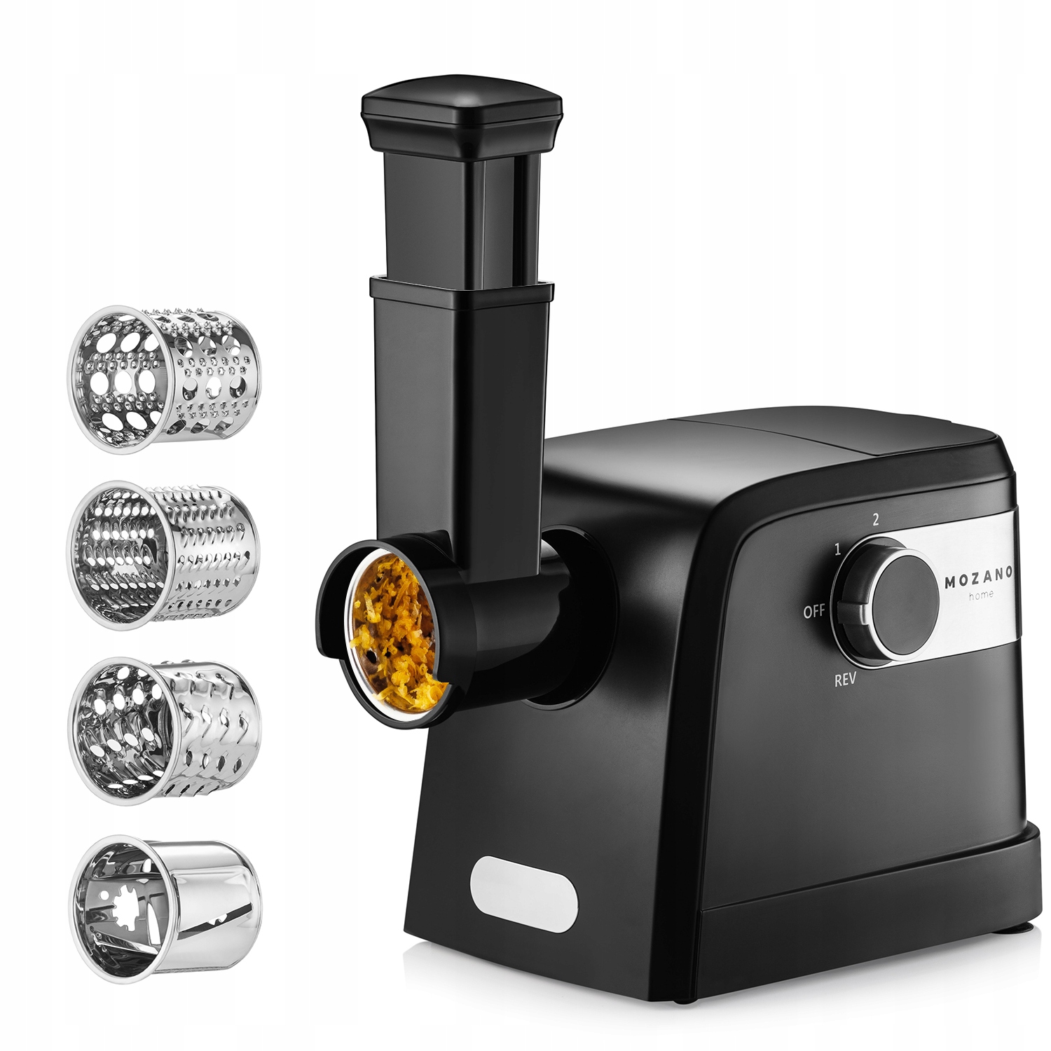 ▶ W zestawie znajduje się szatkownica z czterema wymiennymi bębnami do krojenia i siekania warzyw.
