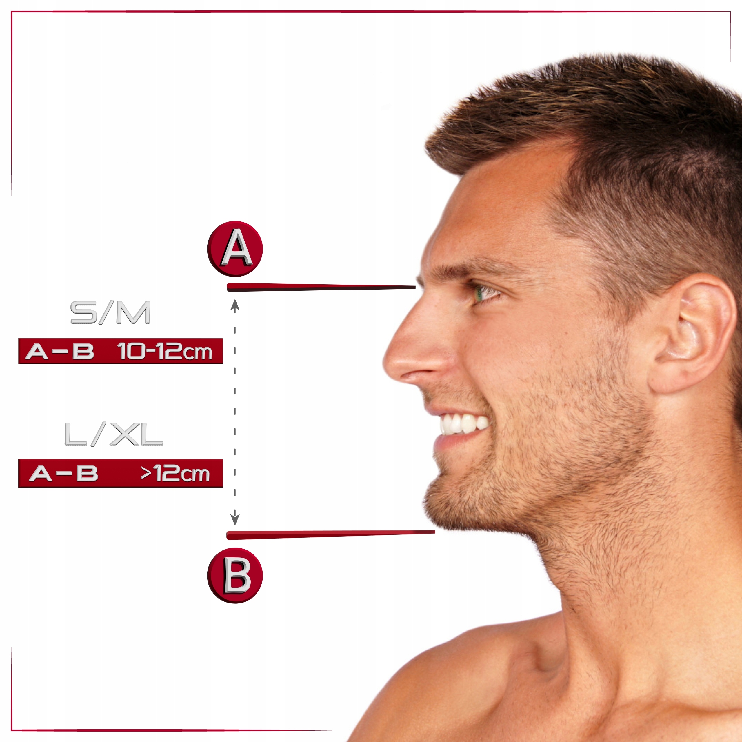 ➡️ Zalecamy pomiar twarzy, aby upewnić się, że maska będzie pasować. Należy zmierzyć odległości od brody do górnej części nosa – według instrukcji na zdjęciu.