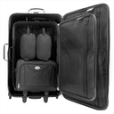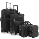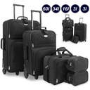 Набор багажа для путешествий состоит из двух больших чемоданов, сумки через плечо и косметичка. Комплект изготовлен из высококачественного полиэстера. Меньший чемодан и сумки можно спрятать в самый большой чемодан.