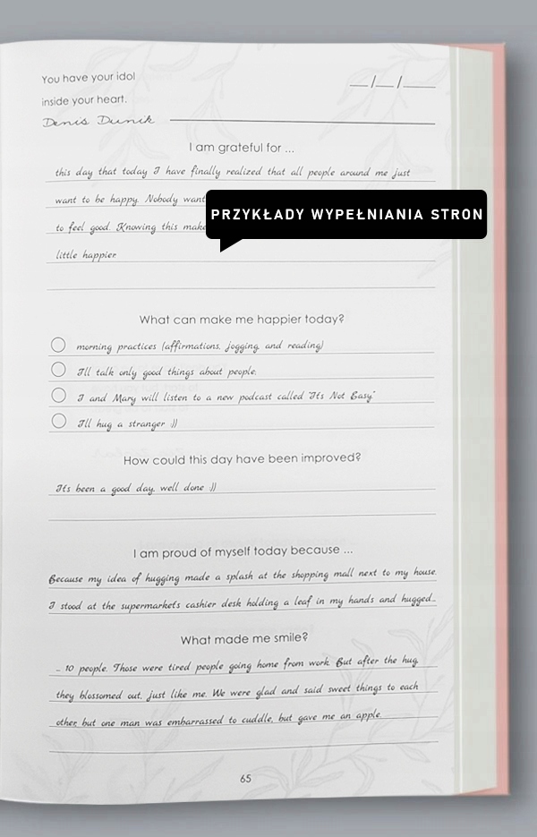 ✅ Instrukcje krok po kroku: Aż 40 stron porad i wskazówek, jak skutecznie praktykować wdzięczność, zwiększać radość i budować nawyki szczęścia.