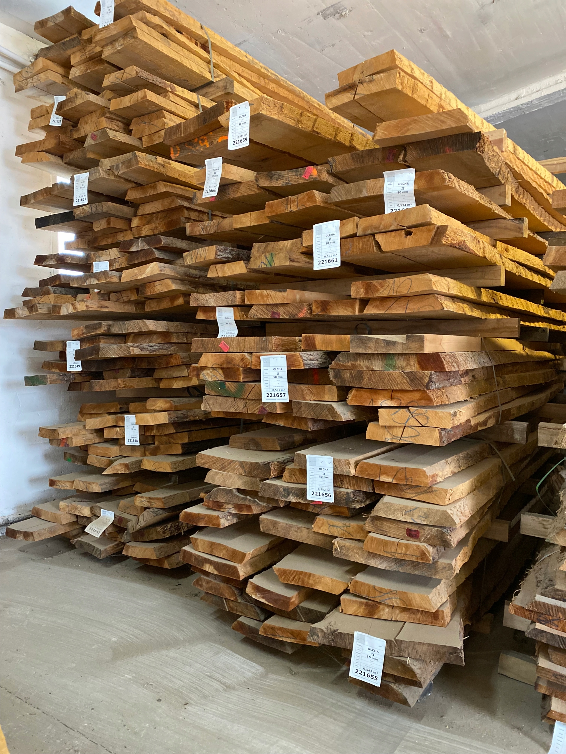 Na tej aukcji oferujemy tarcicę olchową suchą o grubości 50mm w II klasie wg PN. Tarcicę przecieramy na nowoczesnych trakach taśmowych firmy Wood-Mizer, umożliwiających optymalne wykorzystanie materiału i wysoką precyzję cięcia. Następnie tarcica jest sezonowana w odpowiednich warunkach i suszona w nowoczesnych suszarniach znanych firm LUKA i LEKO wyposażonych w w pełni automatyczne sterowanie holenderskiej firmy BES-Bollmann. Po wysuszeniu tarcicy do 8% wilgotności jest ona przechowywana w ogrzewanych magazynach, co daje nam pewność, że jej wilgotność nie ulegnie zmianie.
