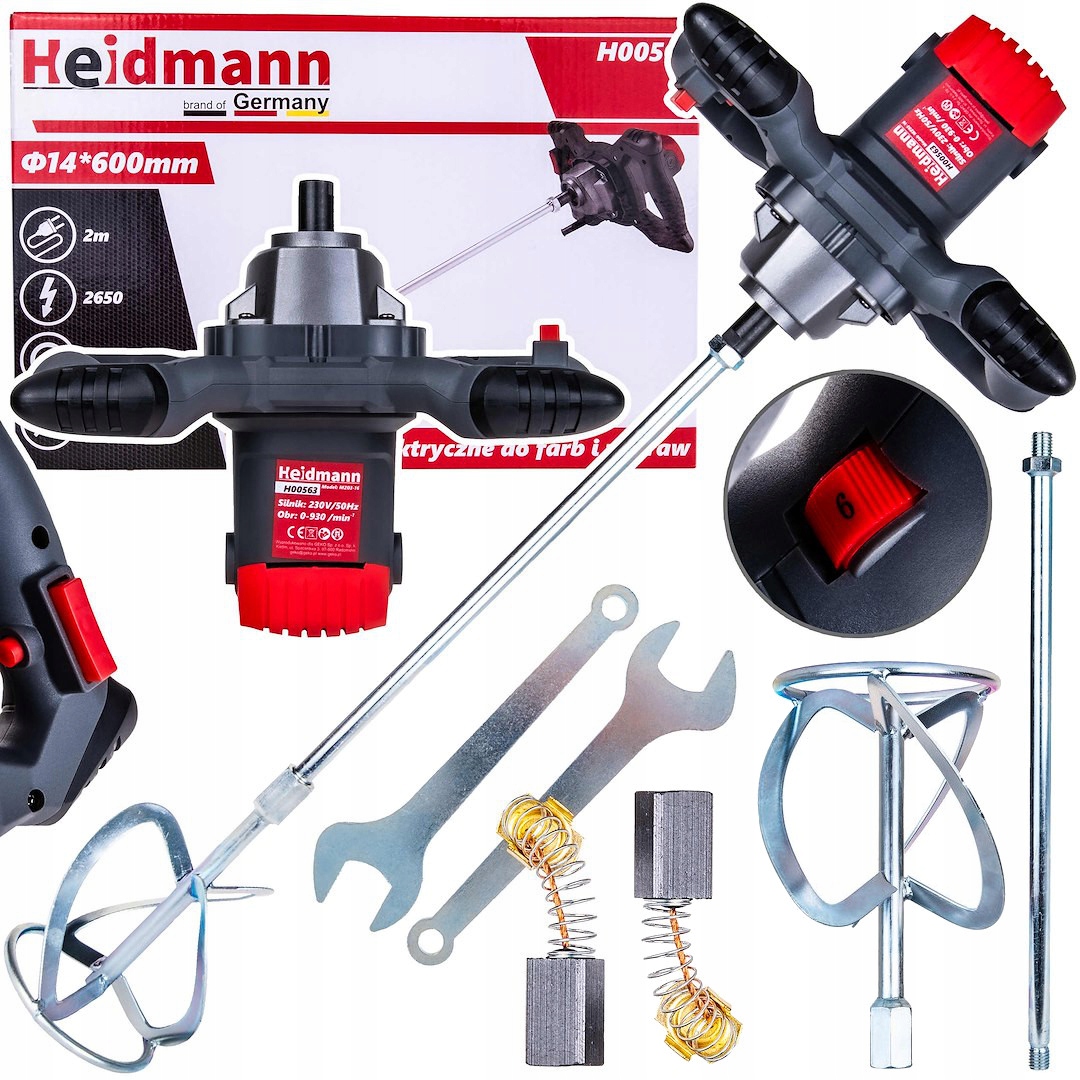 ✅ Mieszadło elektryczne Heidmann 2650W to wysokowydajne narzędzie przeznaczone do mieszania materiałów budowlanych, takich jak zaprawy, kleje, tynki, farby czy gładzie. Wyposażone w mocny silnik o mocy 2650W, regulację obrotów oraz standardowy gwint M14, mieszadło jest wszechstronnym rozwiązaniem zarówno dla profesjonalistów, jak i domowych majsterkowiczów.