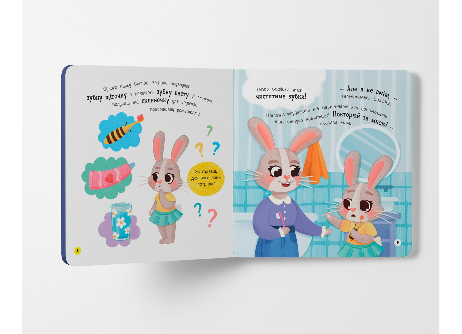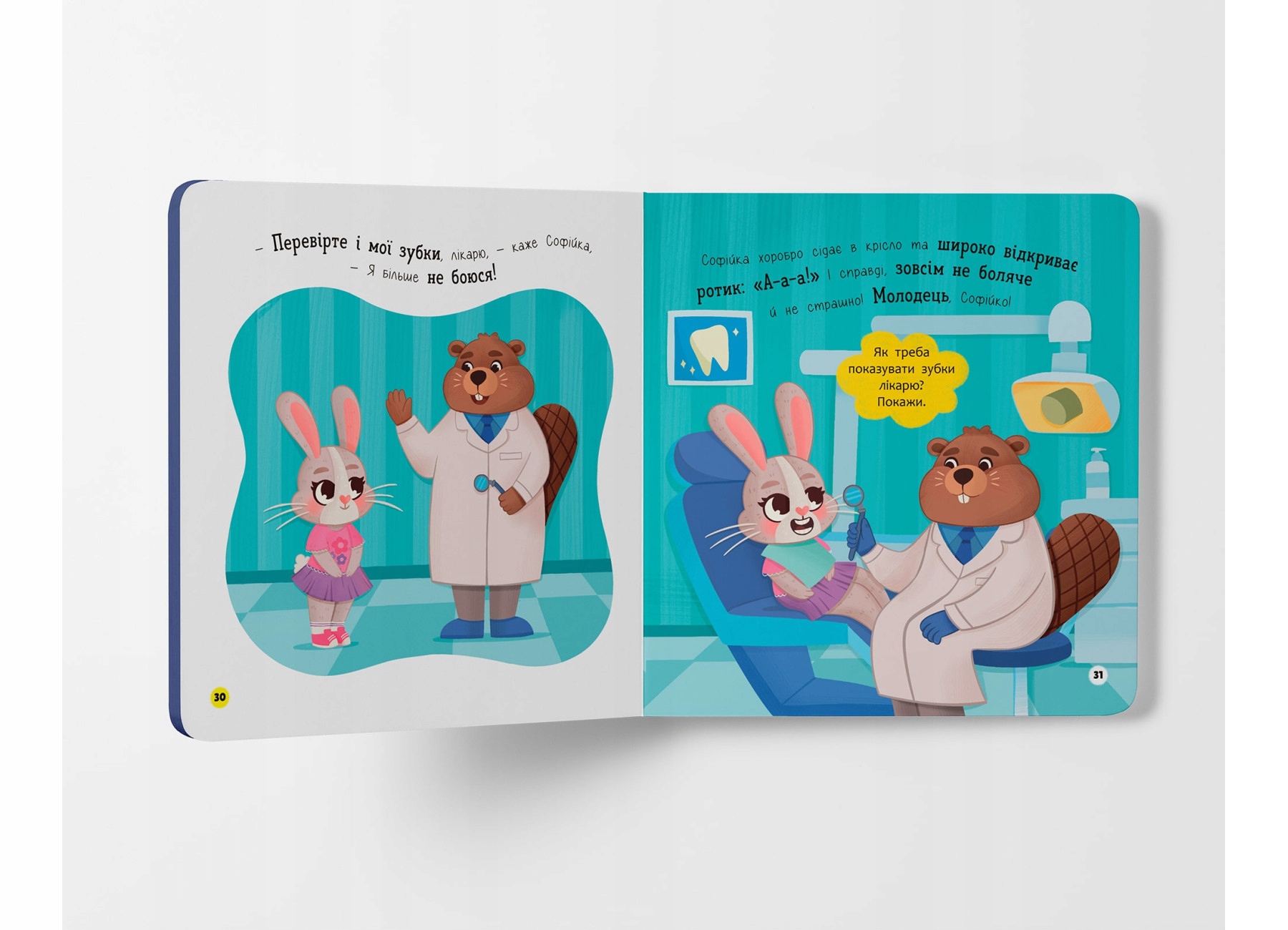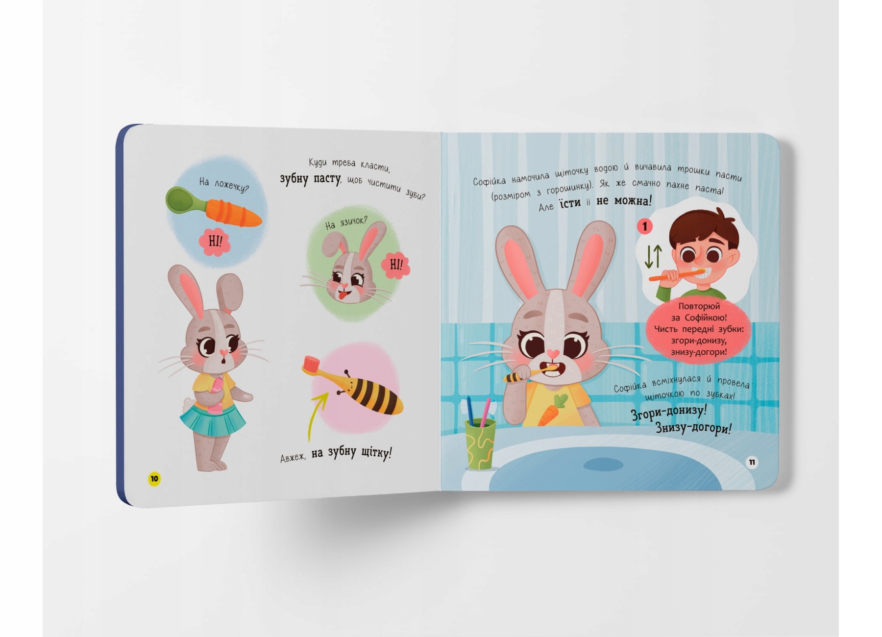 Ця інтерактивна книжка підкаже батькам, як в ігровій формі допомогти дитині навчитися чистити зубки. Разом з милим героєм ваш малюк засвоюватиме важливі навички: запам’ятає правильну послідовність дій — намочити щіточку, вичавити пасту, почистити верхні зубки, а потім нижні, обов’язково прополоскати ротик. А якщо раптом не вийшло — не треба засмучуватися, варто спробувати ще. Також малюк дізнається, що чистити зубки необхідно вранці, ввечері та після їди, лікар-стоматолог добрий та веселий, і відвідувати його зовсім не страшно.