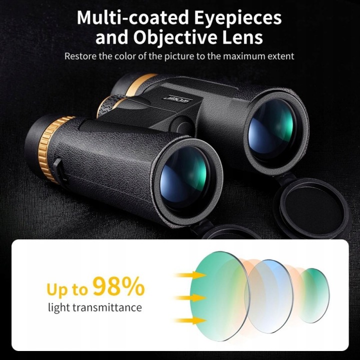 Soczewki lornetki wykonano ze szkła doskonałej jakości BAK-4, które daje bardzo jasny i wyraźny obraz, z bardzo dobrym odwzorowaniem kolorów.
