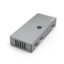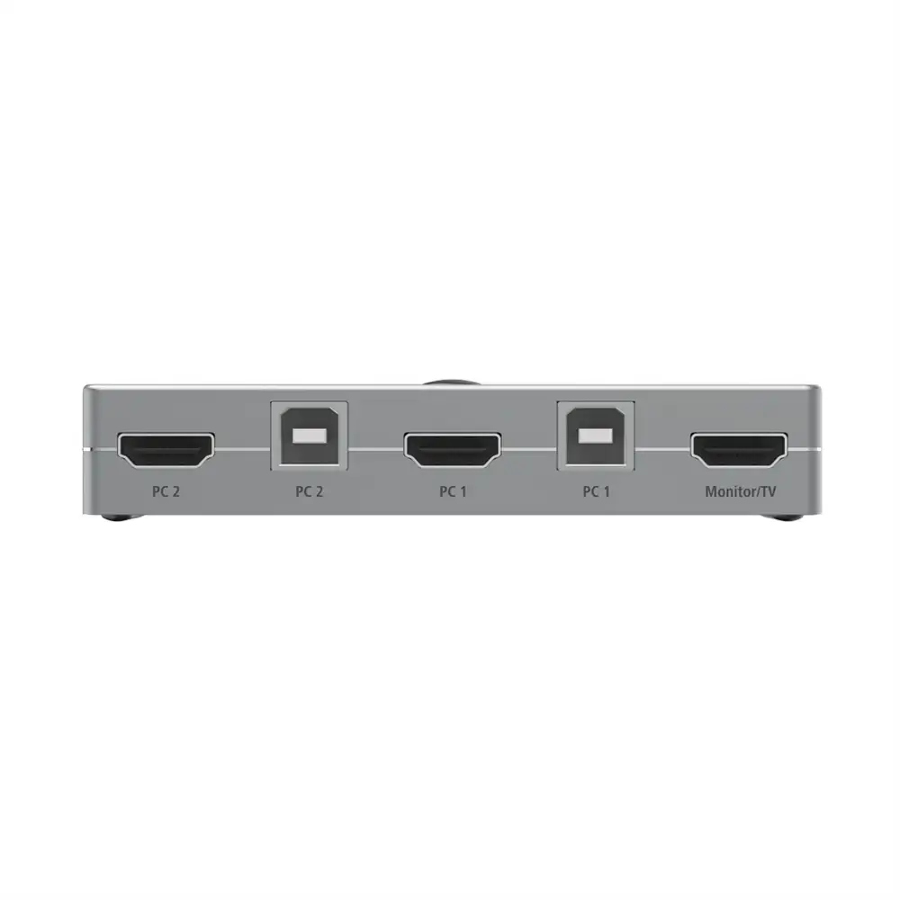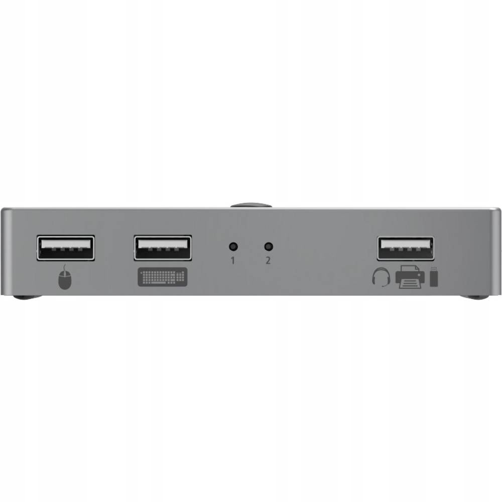 Przełącznik KVM z 4 połączeniami, gdy konieczne jest naprzemienne przełączanie wielu urządzeń pomiędzy dwoma komputerami PC, notebookami, MacBookami lub tabletami. Wysoka szybkość transferu danych do 480 Mbps. Kabel HDMI™ zapewniający perfekcyjny obraz wysokiej rozdzielczości 4096 x 2160 (4k) (pikseli). Wysokiej jakości wytrzymała obudowa metalowa o eleganckim wyglądzie. Duży rozstaw gniazd pozwala na łatwe podłączanie nawet szerokich wtyczek. Zastosowanie elastycznych materiałów zapewnia ochronę przed złamaniem kabla. Wysokiej jakości materiały i wykonanie gwarantują doskonałą jakość transmisji. Koniec z ponownym podłączaniem urządzeń między dwoma komputerami PC/notebookami. Szybkie i proste przełączanie za pomocą jednego przycisku. Plug & Play, bez konieczności ręcznej instalacji oprogramowania / sterowników. Zasilanie przez USB. Przełączalne połączenia:. 3 x USB-A: do podłączenia np. pamięci USB, myszy, klawiatury, drukarki, zestawu słuchawkowego. 1 x HDMI™: do podłączenia np. Wymagania systemowe:. System operacyjny: Windows 11/10/8/7 oraz Mac OS 10.8 w górę.