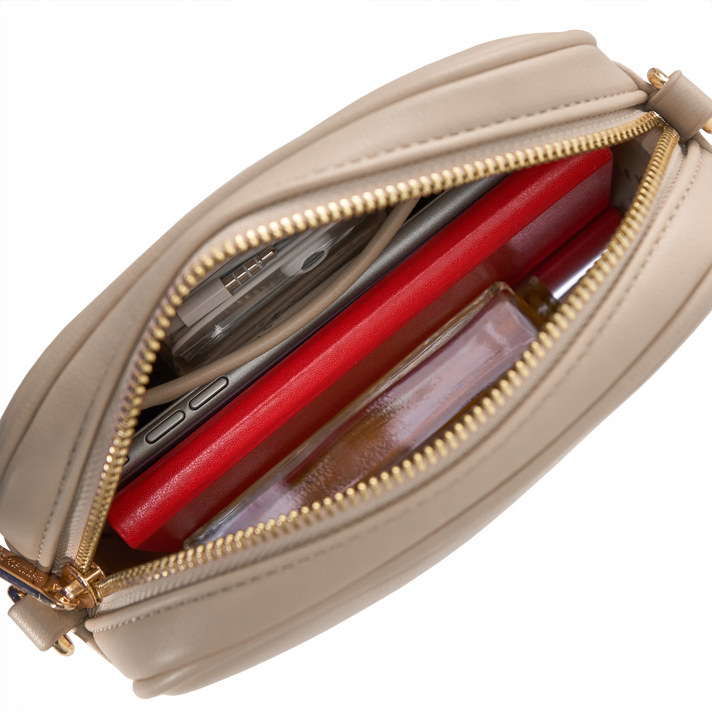 Mimo niewielkich rozmiarów, torebka MILEY jest bardzo pojemna. Posiada jedną główną komorę, która została wyposażona w dwie dodatkowe kieszenie: jedną otwartą i jedną zapinaną na zamek. Dzięki takiej organizacji wnętrza, najważniejsze przedmioty, jak telefon, portfel czy klucze, są zawsze pod ręką i odpowiednio zabezpieczone. Zamknięcie na zamek błyskawiczny zapewnia dodatkową ochronę przed przypadkowym wypadnięciem rzeczy.