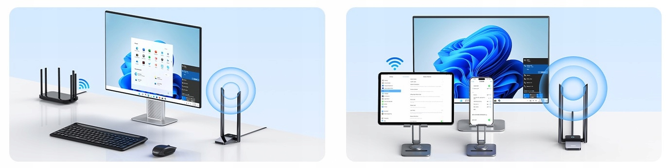 Adapter WiFi Baseus FastJoy zapewnia wyjątkową prędkość transmisji danych, która dochodzi do 1800 Mbps. Dzięki obsłudze dwóch pasm przenoszenia – 2,4 GHz (600 Mbps) oraz 5,8 GHz (1200 Mbps), możesz wygodnie oglądać filmy w wysokiej jakości, grać w gry online bez opóźnień oraz korzystać z Internetu bez zakłóceń. To idealne rozwiązanie dla wymagających użytkowników poszukujących niezawodnego połączenia.