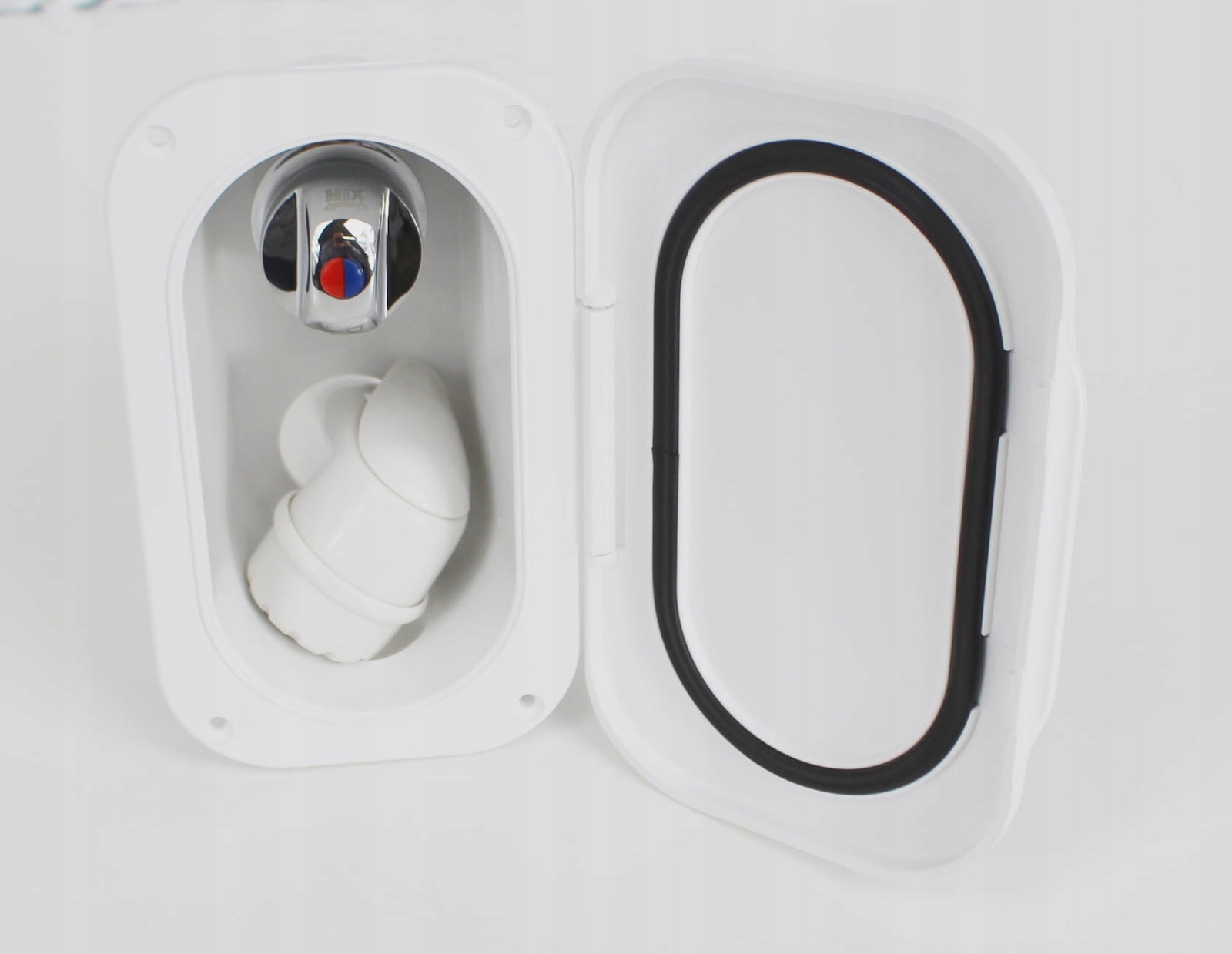 Minimalistyczny i elegancki wygląd prysznica Nuova Rade sprawia, że pasuje on do każdego otoczenia. Biała osłona nie tylko chroni mechanizm przed zewnętrznymi czynnikami, ale także dodaje stylu i nowoczesności, niezależnie od tego, gdzie zdecydujesz się go zamontować.