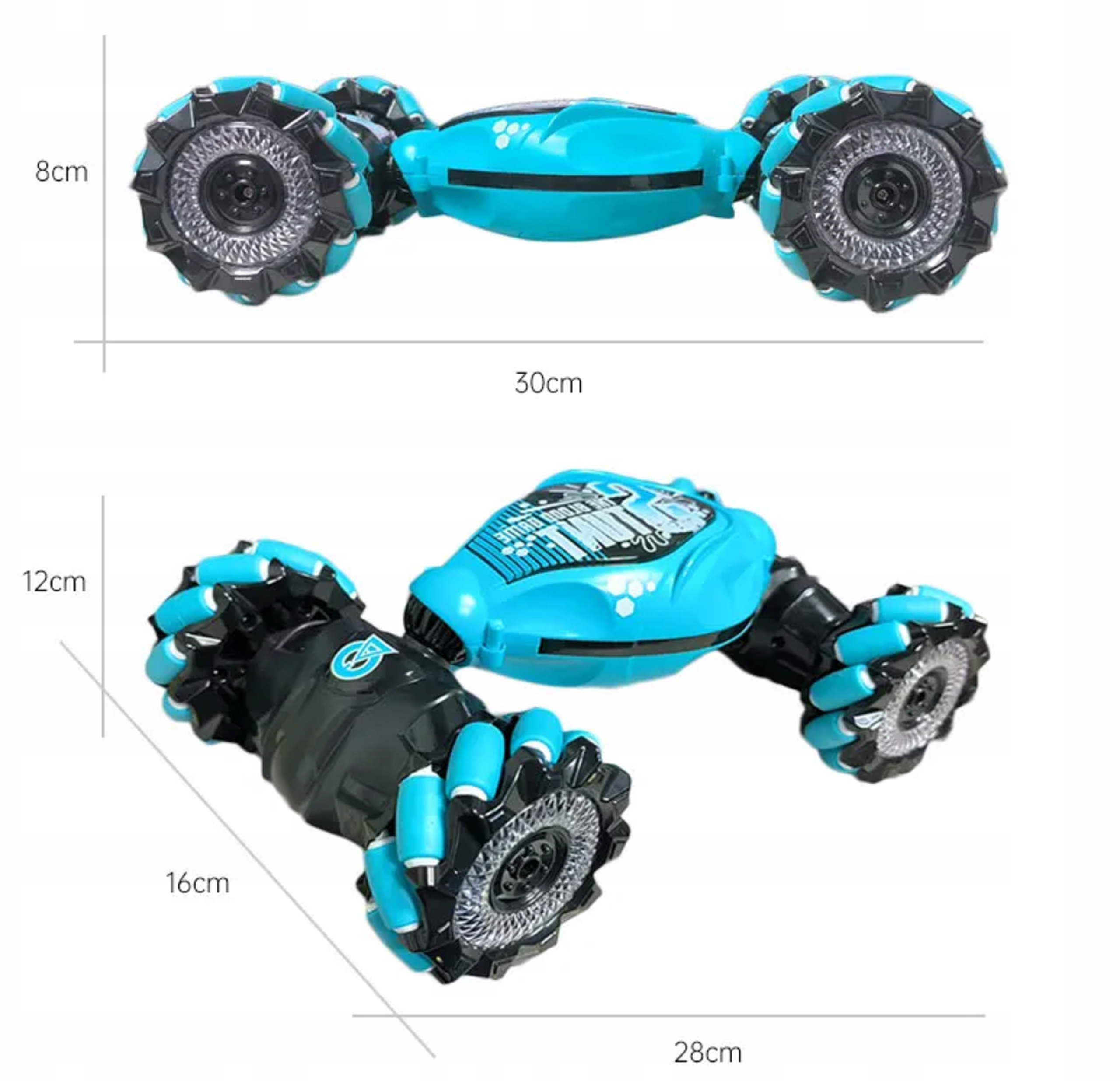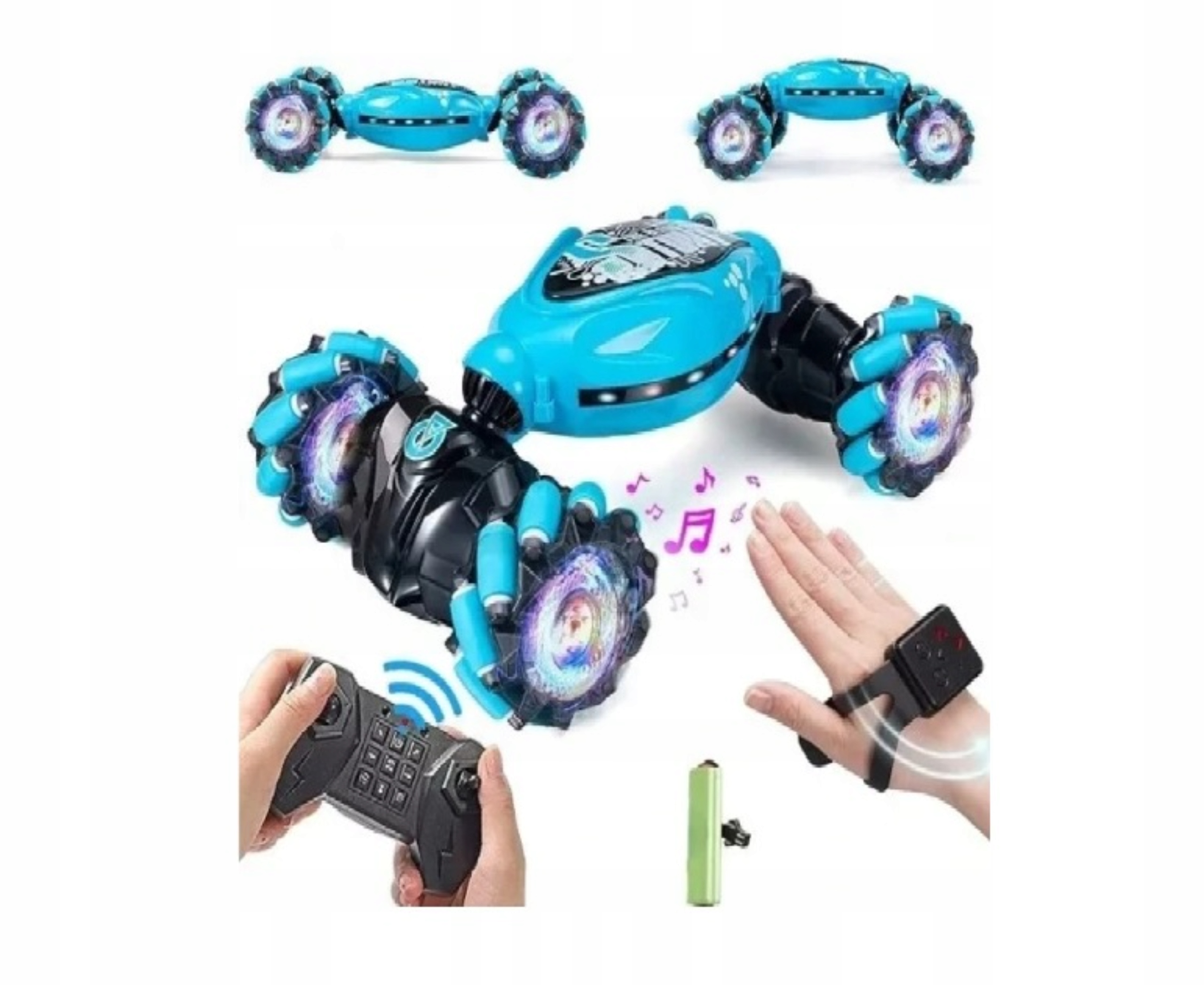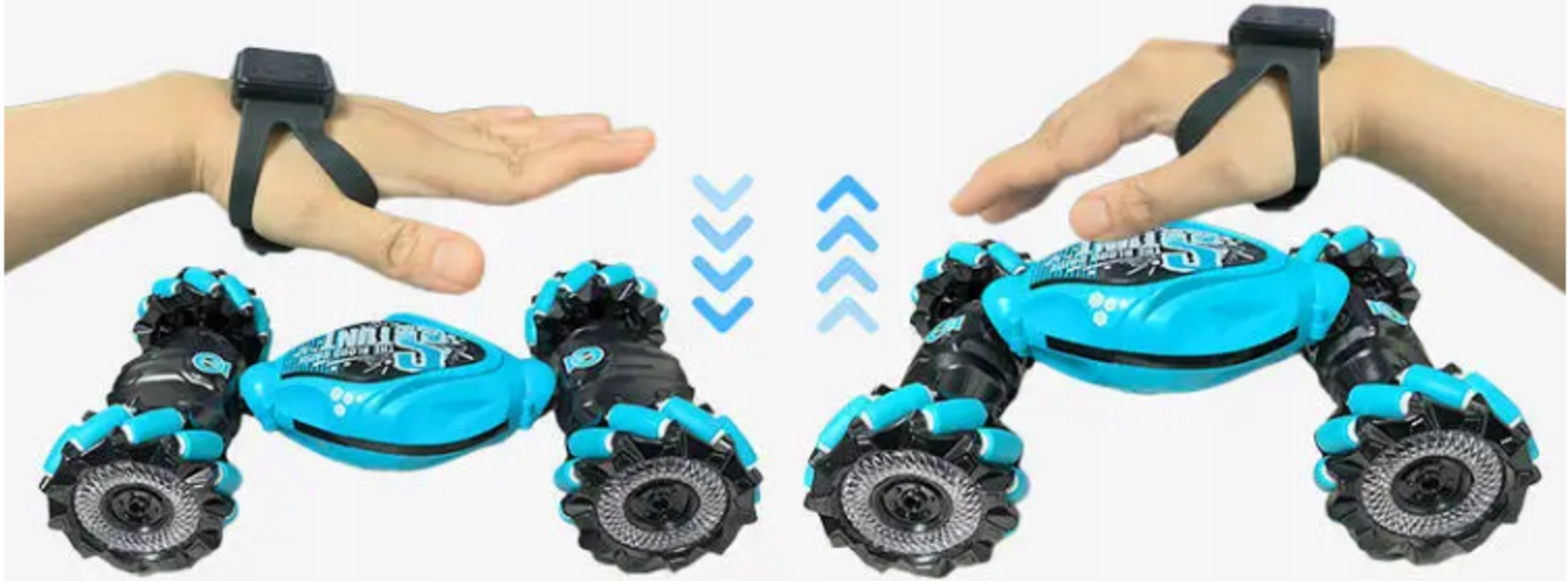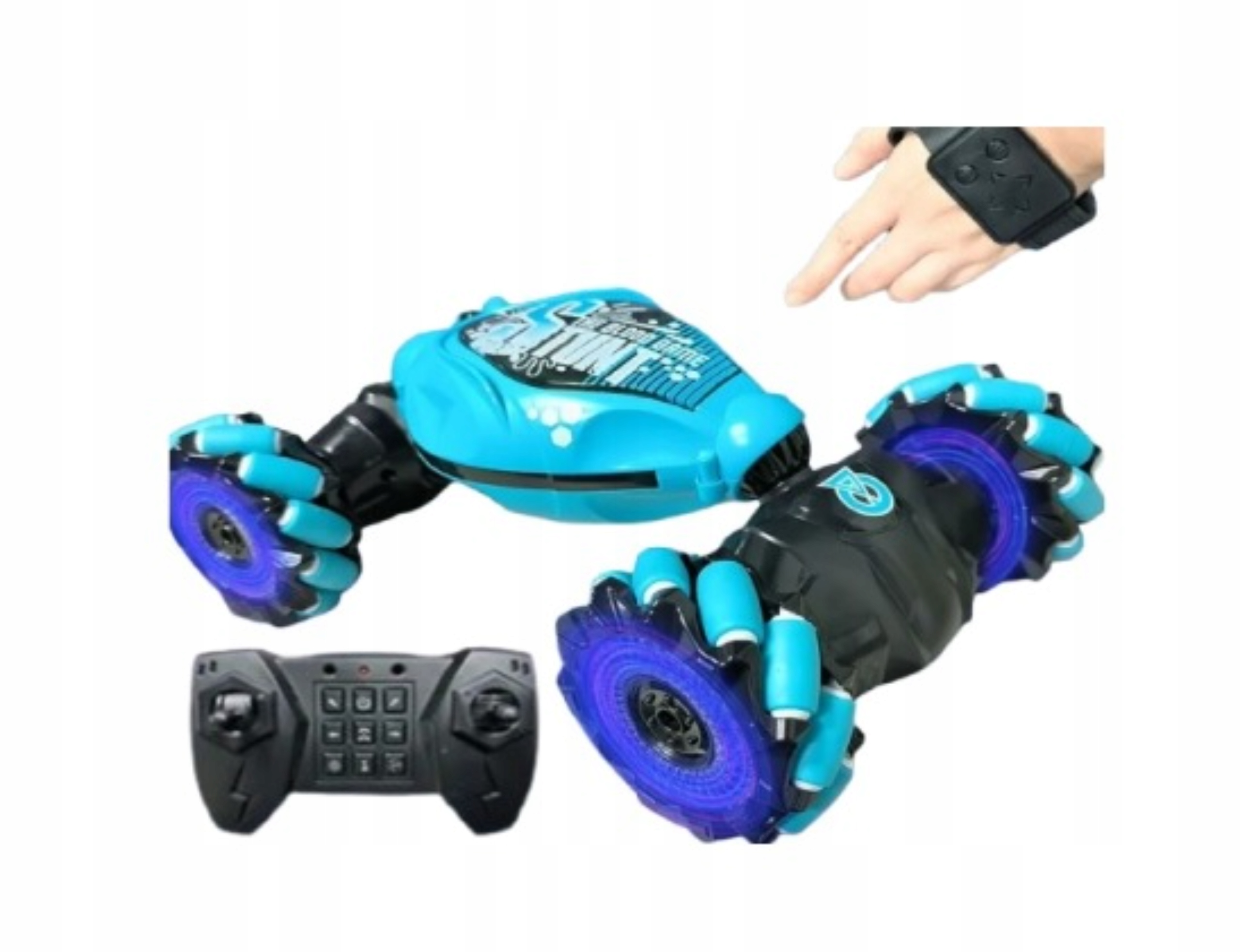Ten samochód RC Stunt Car to połączenie nowoczesnej technologii i świetnej zabawy. Oprócz klasycznego sterowania pilotem, auto możesz prowadzić gestami dłoni dzięki specjalnej opasce! To gwarancja niezapomnianych emocji i efektownych akrobacji.