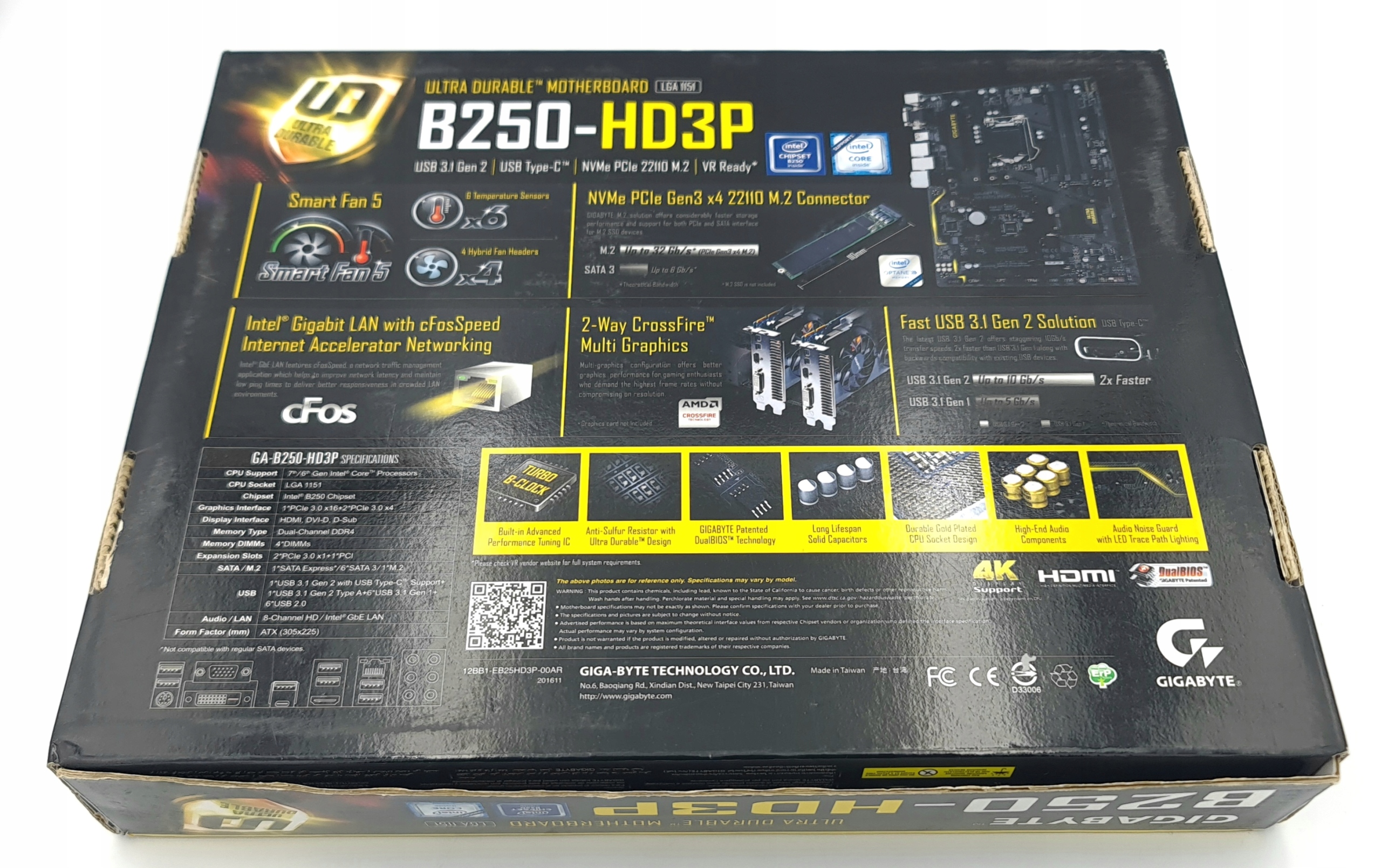 Solidna konstrukcja oraz technologie chroniące komponenty przed przepięciami i wilgocią sprawiają, że Gigabyte GA-B250-HD3P to niezawodna opcja dla użytkowników, którzy oczekują wydajności, trwałości i zaawansowanych funkcji w atrakcyjnej cenie.