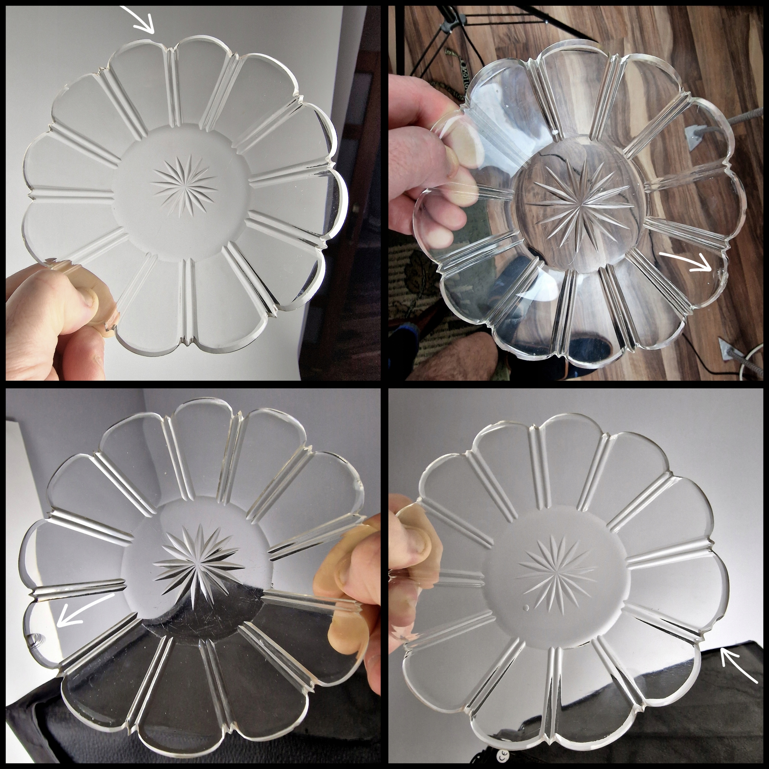 Każdy z talerzy posiada na krawędzi uszczerbienie pokazane na zdjęciach