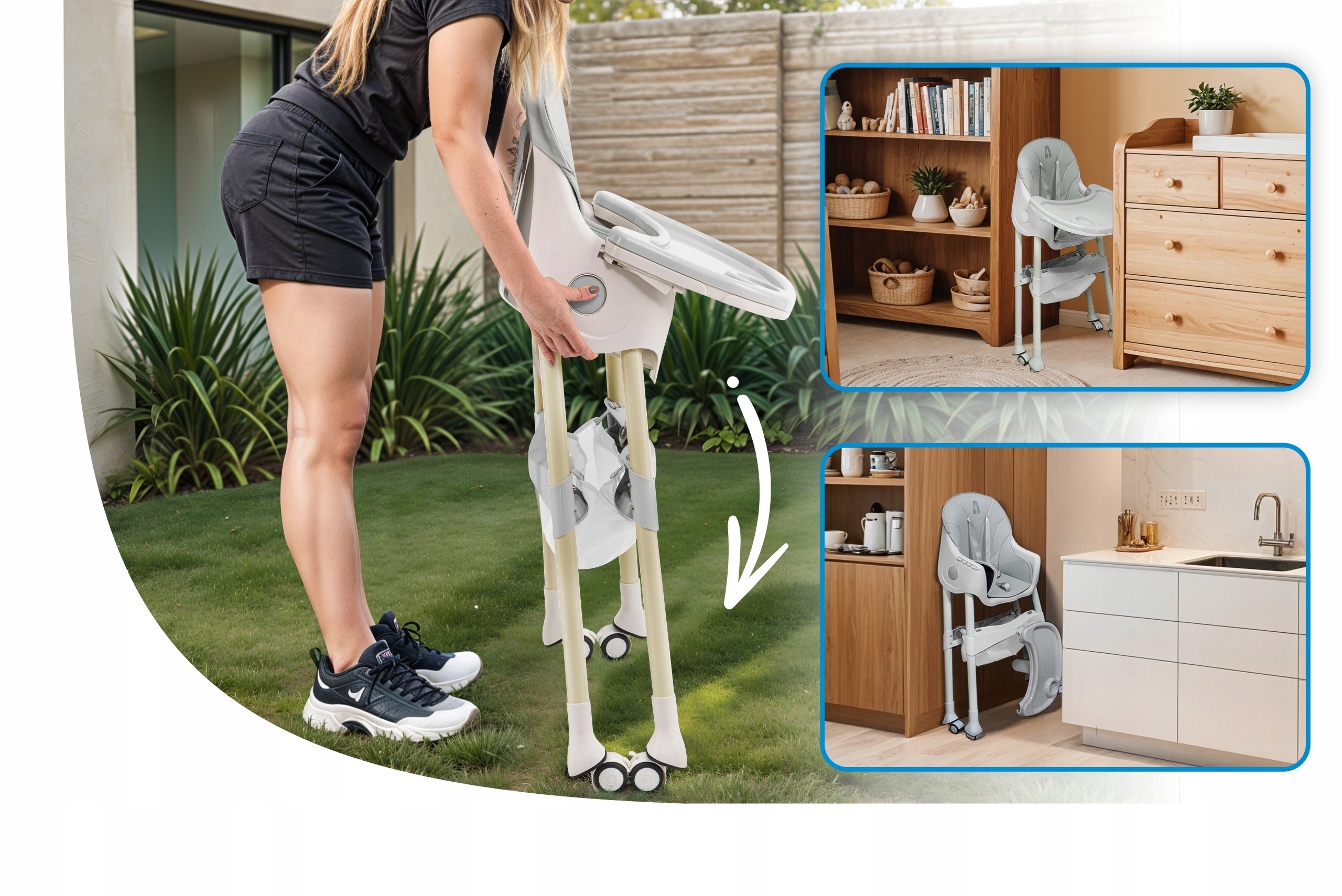 ✅ Kółka te zapewniają swobodę poruszania się po różnych powierzchniach, takich jak kuchnia, salon, taras czy ogród, dzięki czemu krzesełko można wykorzystywać zarówno w pomieszczeniach, jak i na zewnątrz.