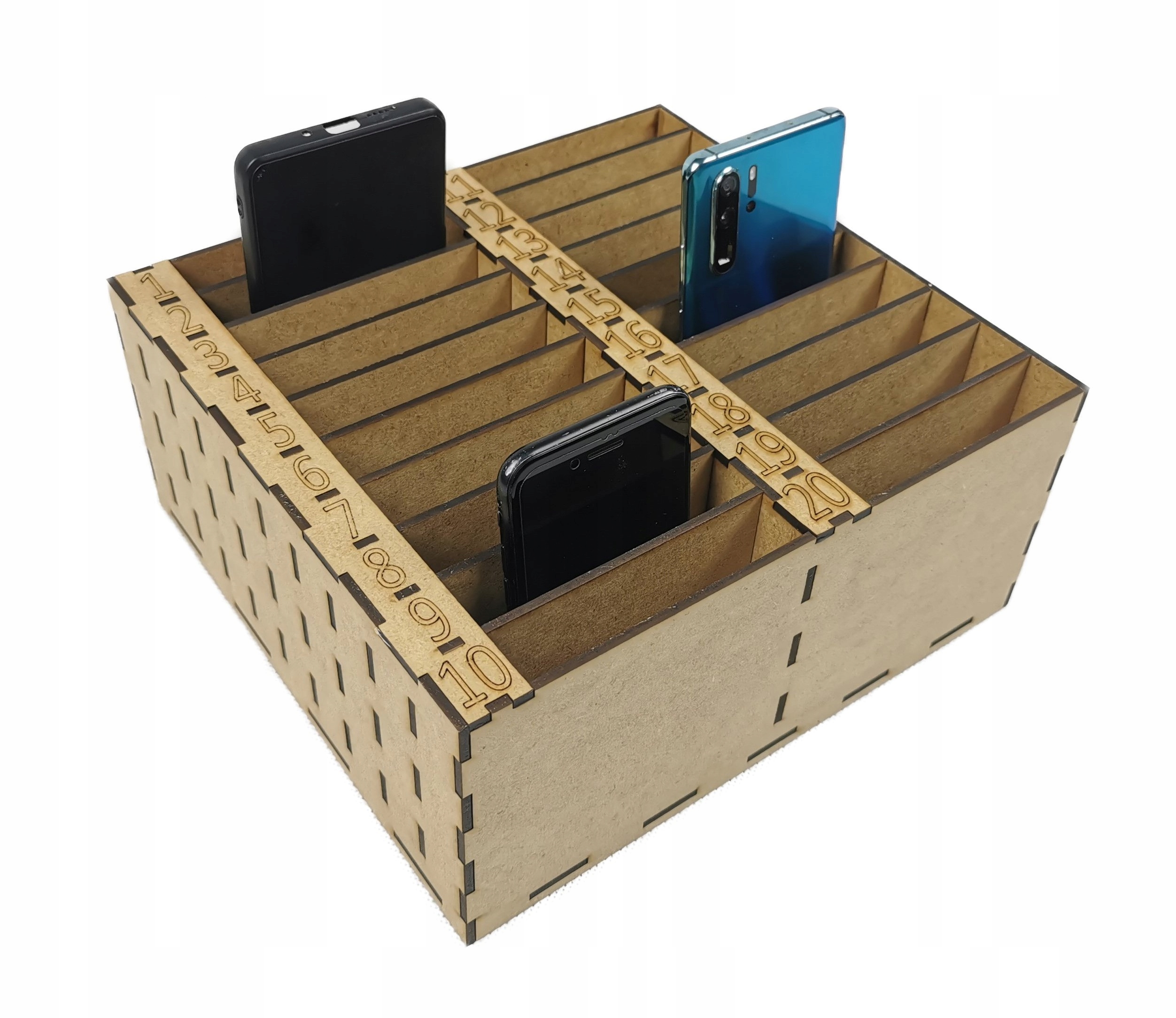 Nasza skrzynka na telefony zapewnia, że każde urządzenie jest bezpiecznie - przechowywane bez ryzyka zgubienia lub uszkodzenia. Dzięki numeracji przy każdej przegrodzie z łatwością można kontrolować, kto nie odłożył telefonu.