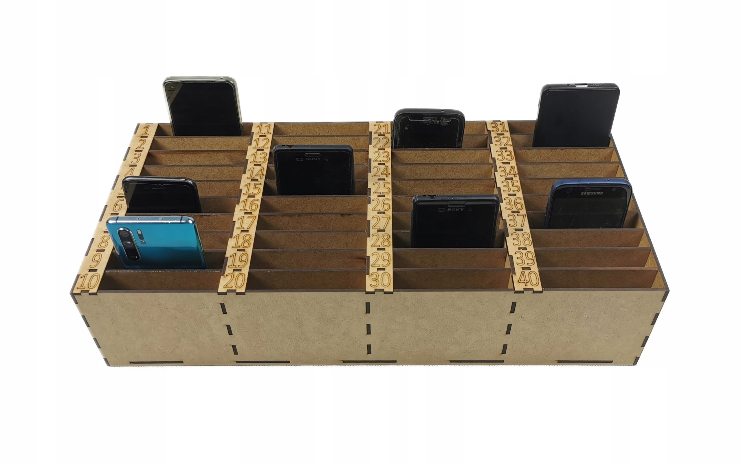 Nasza skrzynka na telefony zapewnia, że każde urządzenie jest bezpiecznie - przechowywane bez ryzyka zgubienia lub uszkodzenia. Dzięki numeracji przy każdej przegrodzie z łatwością można kontrolować, kto nie odłożył telefonu.