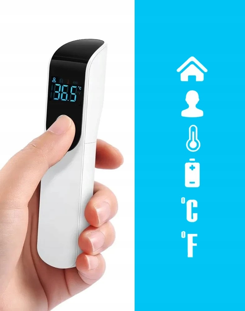 Pomiar temperatury ciała (32°C – 42,9°C) oraz obiektów (0°C – 100°C) sprawia, że termometr jest wszechstronnym narzędziem do użytku zdrowotnego i codziennego, np. sprawdzania temperatury mleka czy wody.