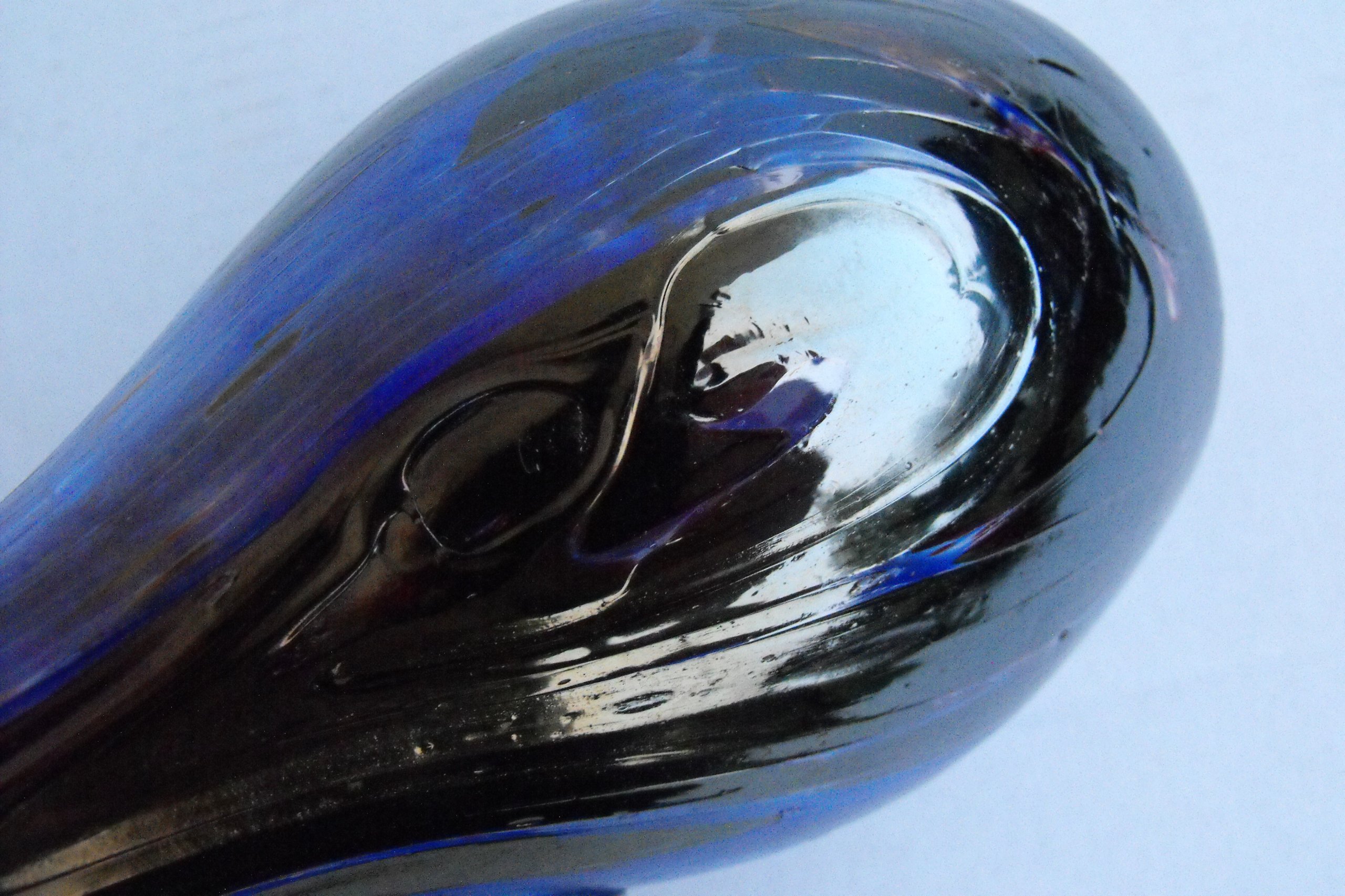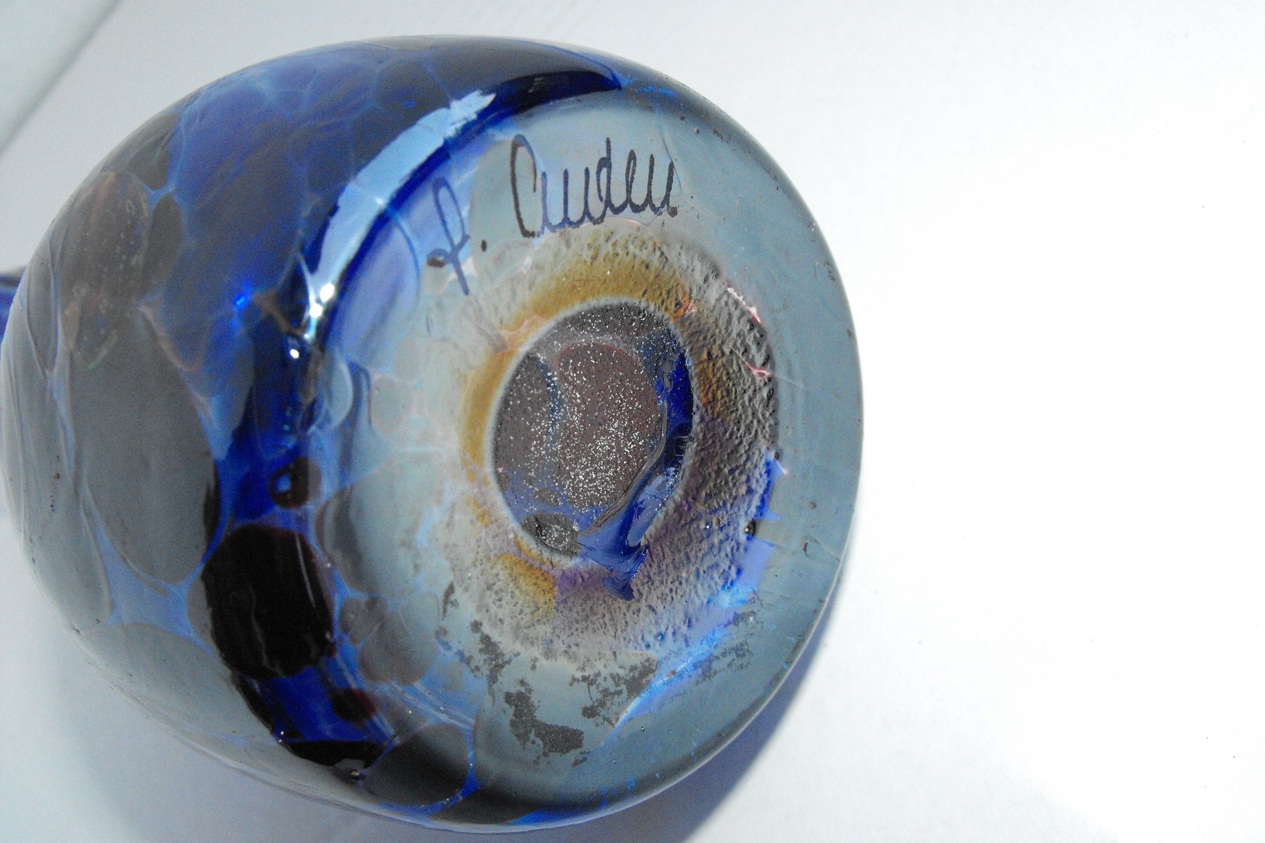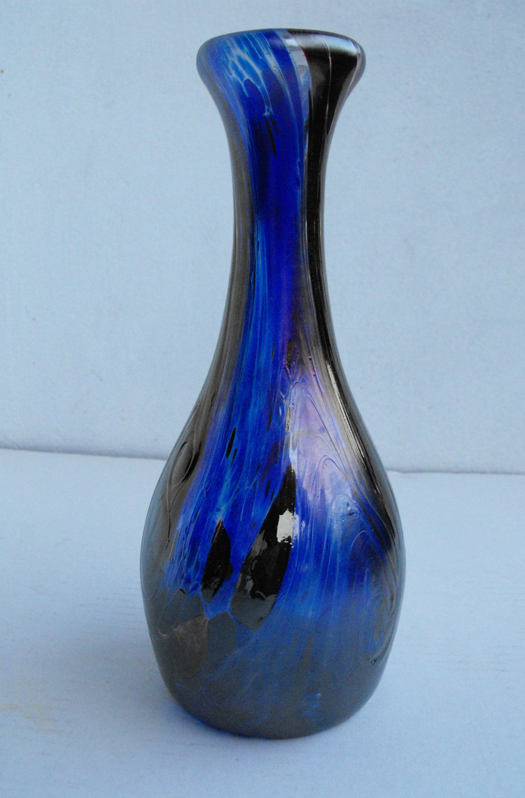 Wazon wykonany ze szkła barwionego w masie, formowany ręcznie, ciekawa struktura, na spodzie sygnatura - do rozszyfrowania. Wysokość ok. 24 cm. Stan b. dobry bez uszkodzeń. Załączone realne zdjęcia oferowanego przedmiotu.