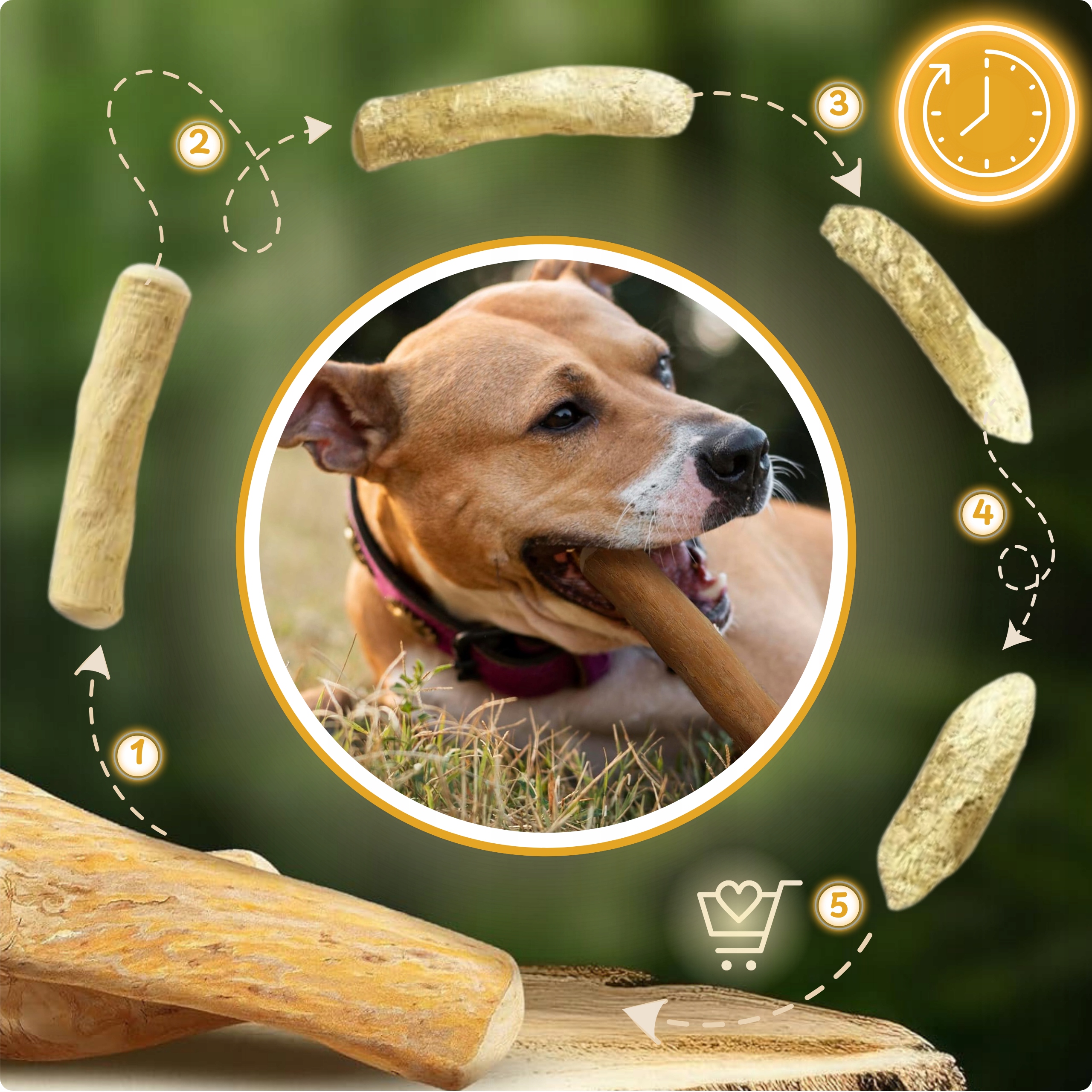 Gryzienie i żucie to naturalny instynkt psa, który pomaga mu się relaksować i zaspokaja potrzebę gryzienia. Patyki kawowe to zdrowy, naturalny i ekologiczny sposób na utrzymanie psa szczęśliwego i zajętego!