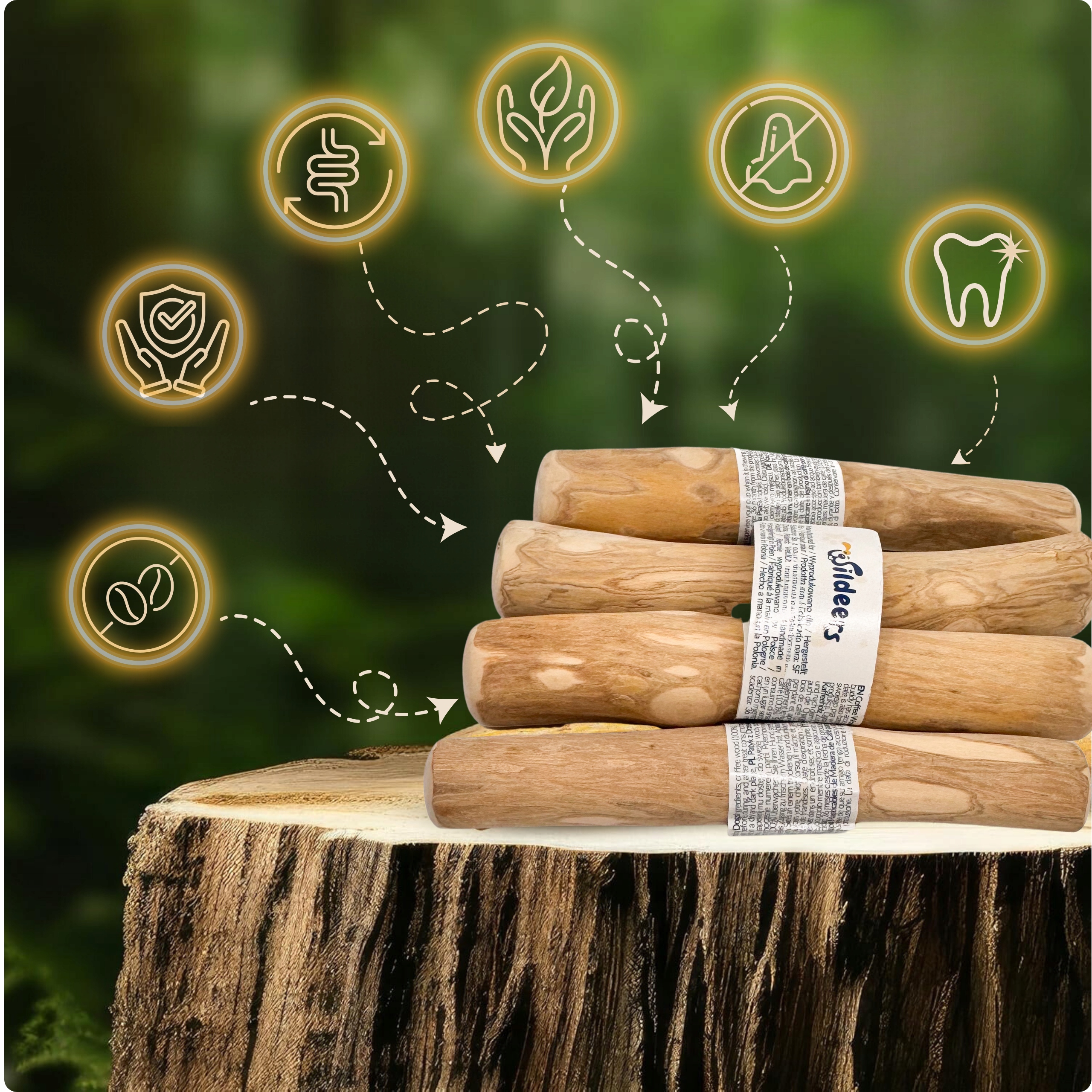 Żucie lub "szczotkowanie" zębów takim patykiem delikatnie usuwa płytkę nazębną i resztki jedzenia, podobnie jak szczoteczka do zębów. Włókna patyka działają jak naturalne włosie. Podczas zabawy z patykiem pies może również masować dziąsła, co poprawia ich ukrwienie i wspomaga zdrowie tkanek wokół zębów.