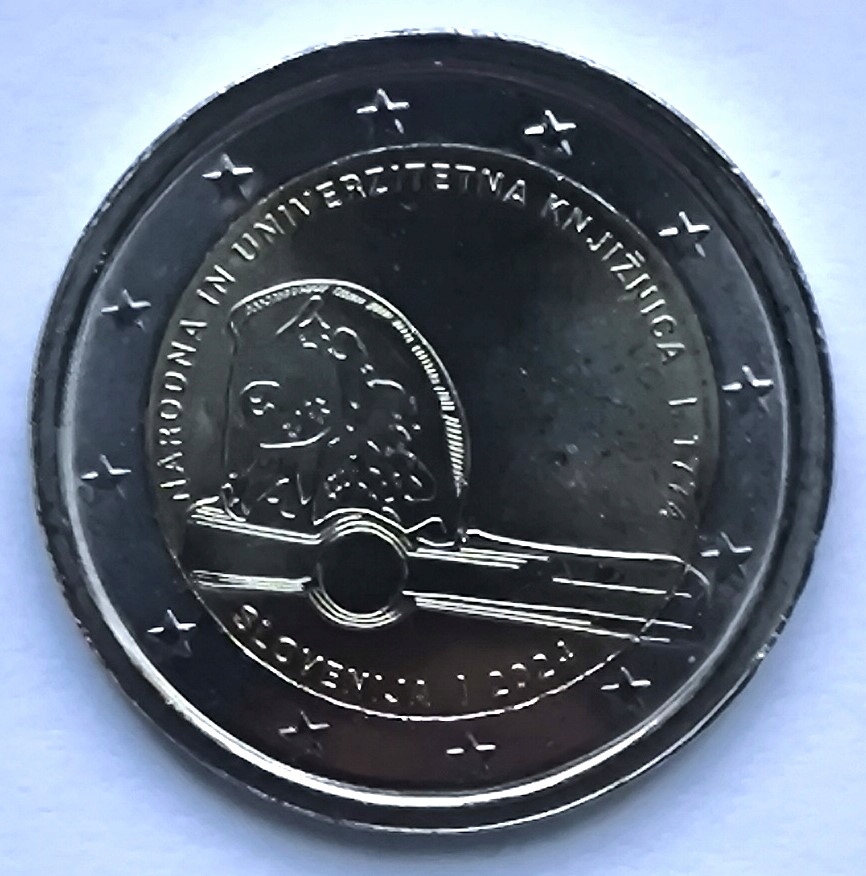 Moneta okolicznościowa wyemitowana w 2024 roku przez Słowenię hołduje 250-tą rocznicę powstania Słoweńskiej Biblioteki Narodowej i Uniwersyteckiej. Moneta przedstawia lekko pochyloną klamkę drzwi Biblioteki Narodowej z pegazem, który symbolicznie prowadzi odwiedzających do świata wiedzy.