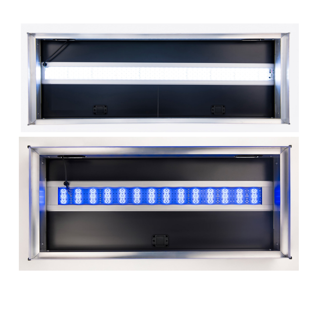 Oświetlenie LED Alex to alternatywa oświetlenia do naszych pokryw aluminiowych Platino. LED Alex to zintegrowana lampka w profilu aluminiowym wyposażona w źródło światła LED i bardzo dobrych parametrach technicznych. Lampka zbudowana jest na module ledowym, dzięki któremu produkt zyskuje nowoczesny design a równomierne rozmieszczenie diod, zapewnia doskonałe oświetlenie całej powierzchni akwarium. Funkcje lampki oparte są na mikroprocesorze, co pozwala na sterowanie jednym przełącznikiem, dzięki któremu możemy operować włączaniem oraz natężeniem światła. Procesor pozwala również na zapamiętywanie ostatnich ustawień.