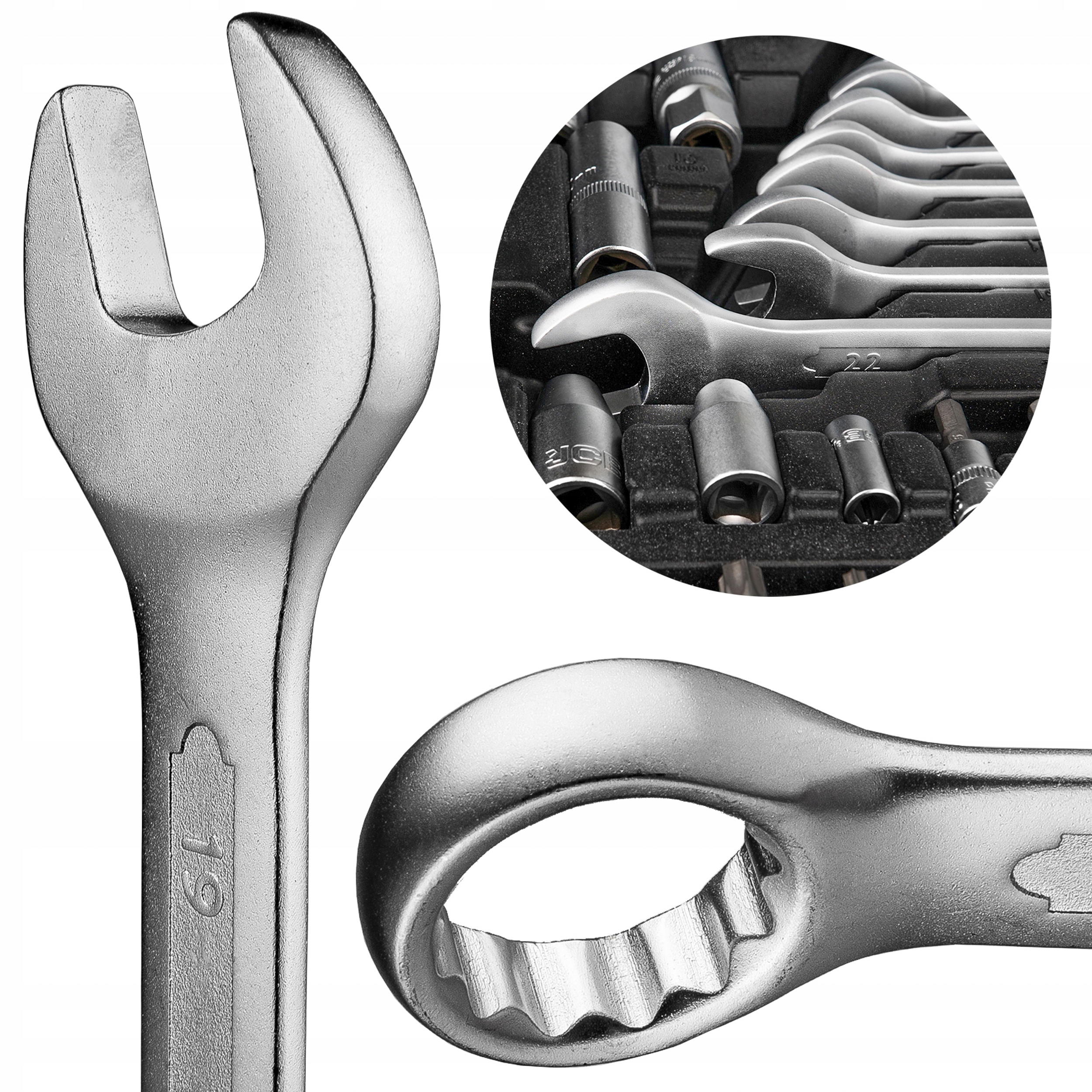 Komplet wykonany z wysokiej jakości, odpornej na korozję stali chromowo-wanadowej, która odpowiada za świetną wytrzymałość i odporność narzędzi na: