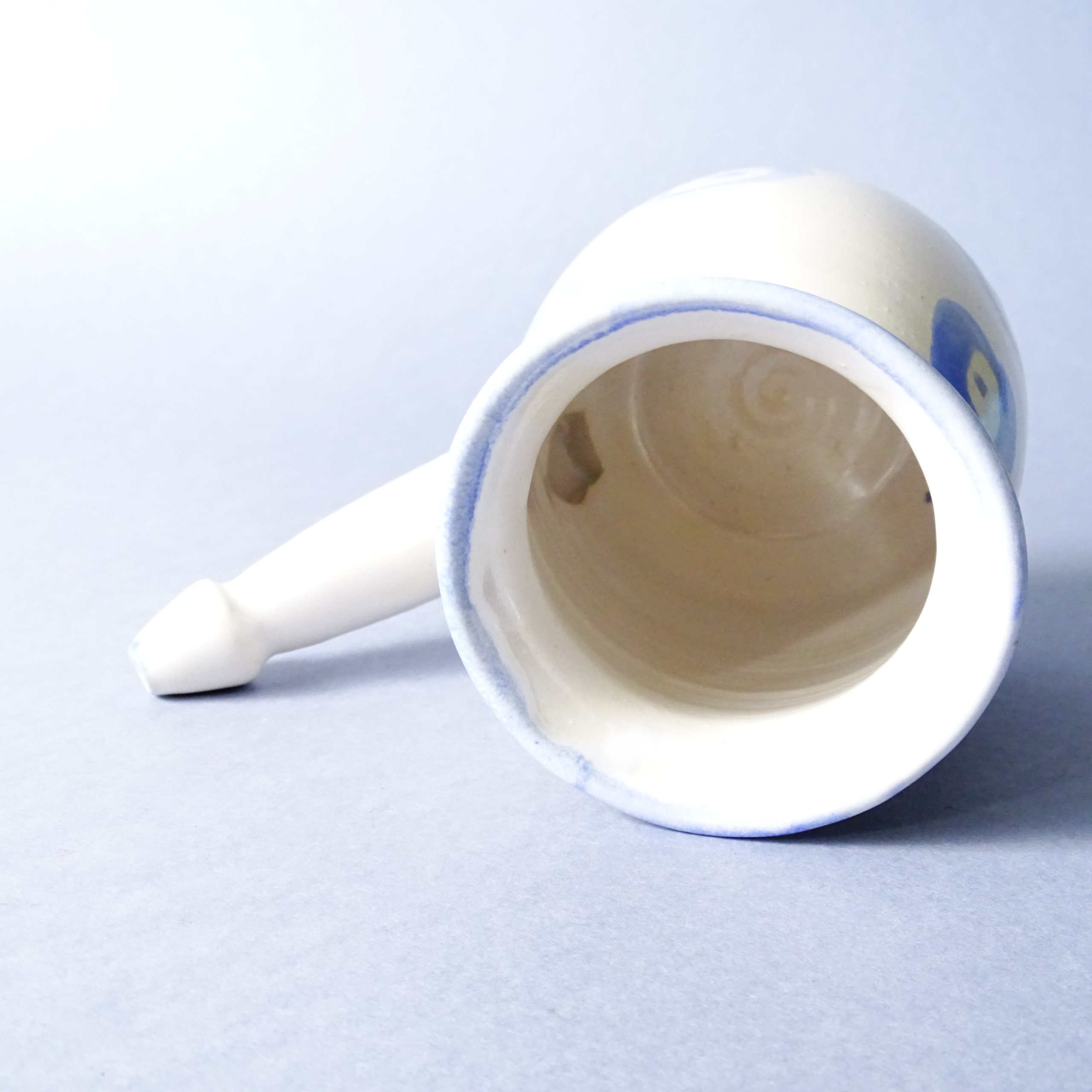 Bardzo ciekawy dzbanek ze szkliwionej gliny.