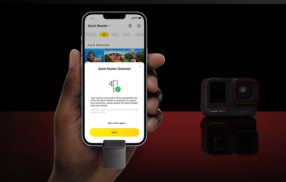 Ułatw sobie pracę z nagraniami dzięki Quick Reader od Insta360. To kompaktowe urządzenie umożliwia szybki i stabilny transfer plików bez konieczności korzystania z Wi-Fi. Niezależnie od tego, czy używasz iOS, czy Androida, ten czytnik kart jest idealnym narzędziem do zarządzania plikami i edytowania ich bezpośrednio na urządzeniach mobilnych.