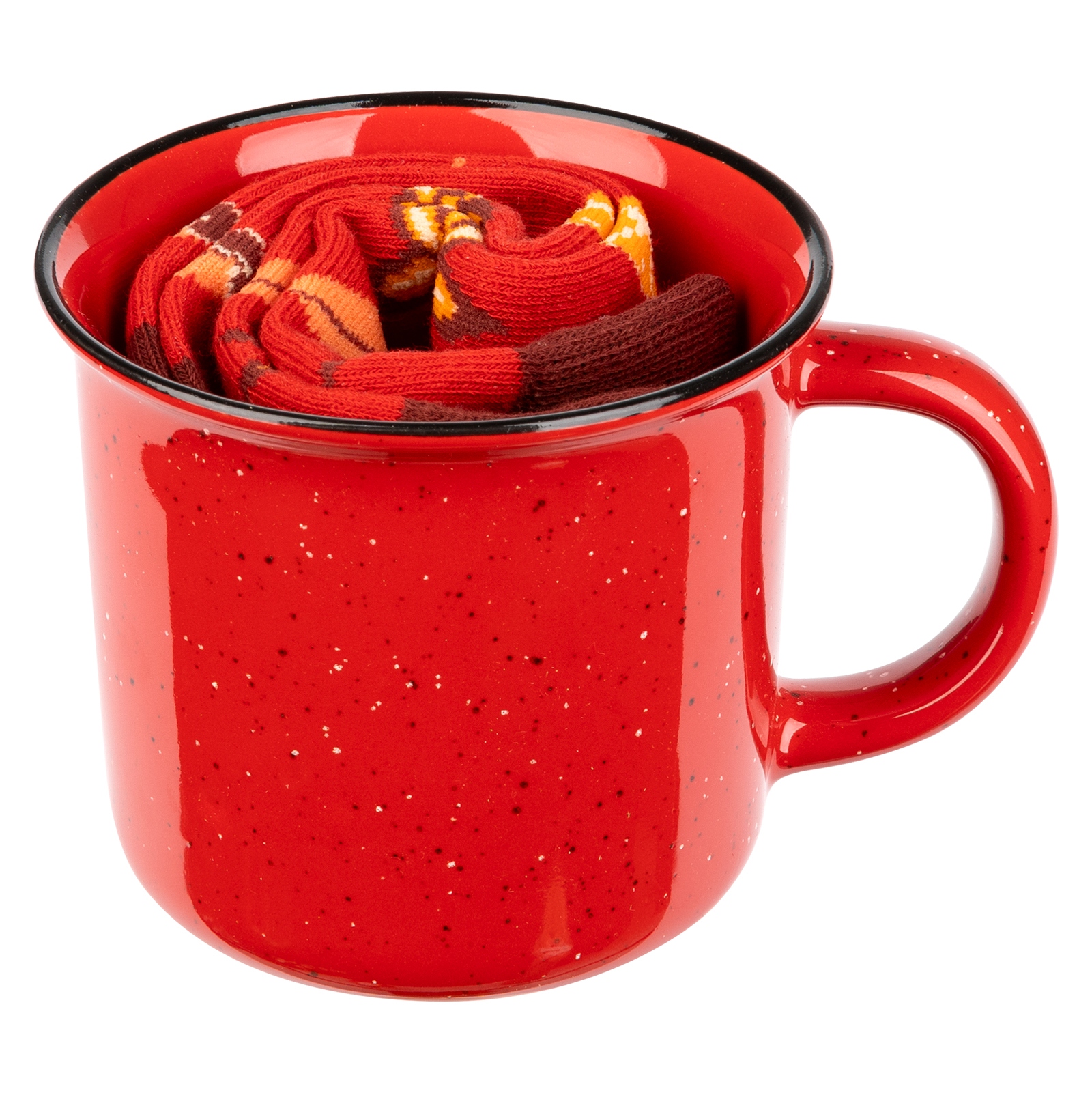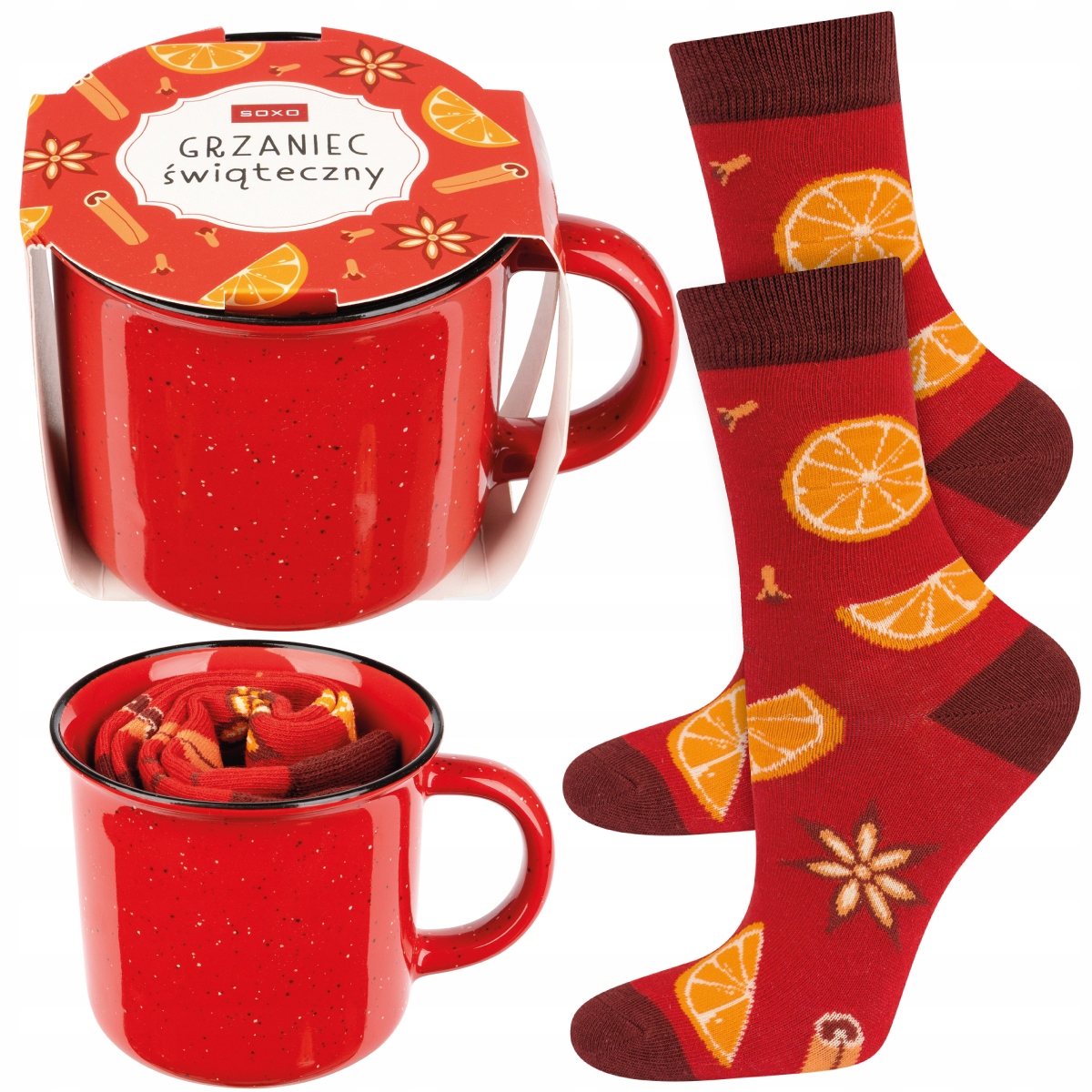 Zestaw idealny na zimowe wieczory – skarpetki damskie z motywem aromatycznego grzańca oraz dopasowany kubek emaliowany, który podkreśla świąteczny klimat i wprowadza magiczny nastrój. ✨