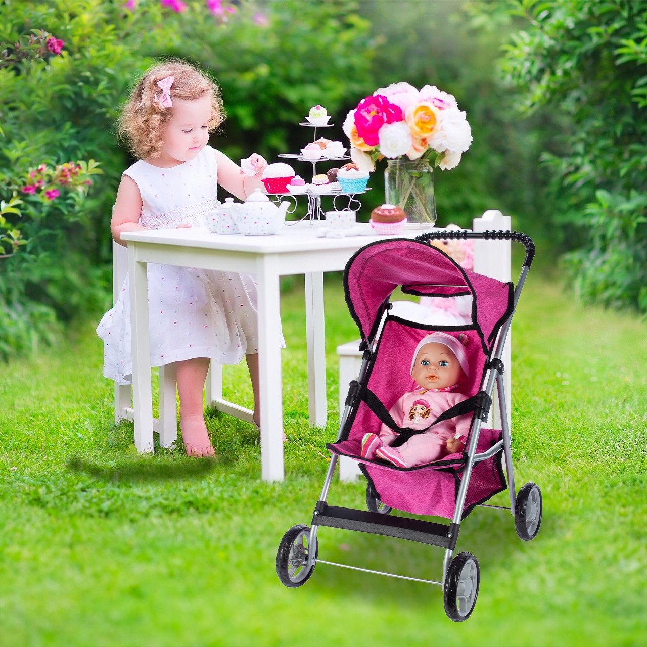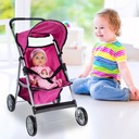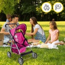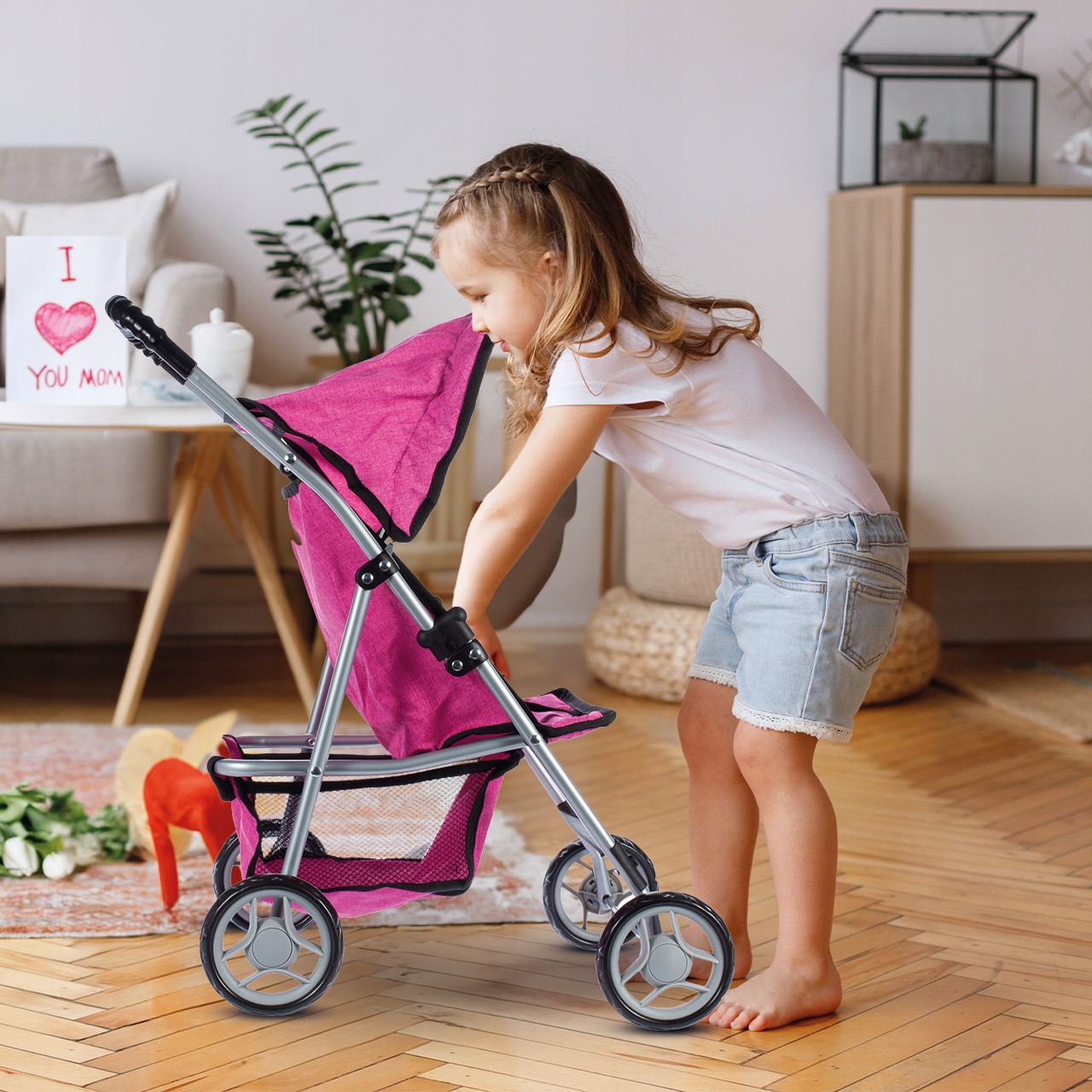 Wózek wyposażony jest w funkcjonalny daszek, który można podnosić i opuszczać, dostosowując go do warunków zabawy. Dzięki temu lalka jest chroniona przed wyimaginowanym słońcem, wiatrem czy deszczem, co sprawia, że zabawa staje się jeszcze bardziej realistyczna.