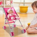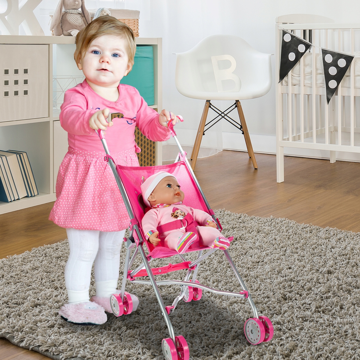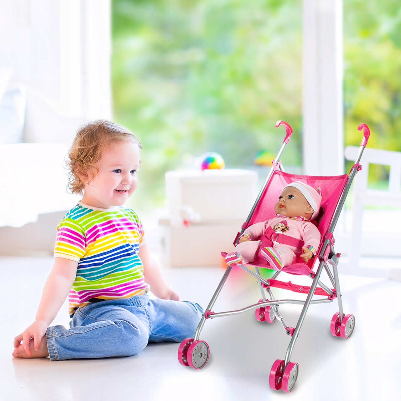 Każda mała dziewczynka uwielbia spacerować ze swoimi lalami. Teraz może zabrać je ze sobą na spacer w tym uroczym wózeczku.