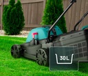 Nasza kosiarka została wyposażona w pojemny kosz na trawę o pojemności 30 litrów, co pozwala na długą, nieprzerwaną pracę bez konieczności częstego opróżniania.