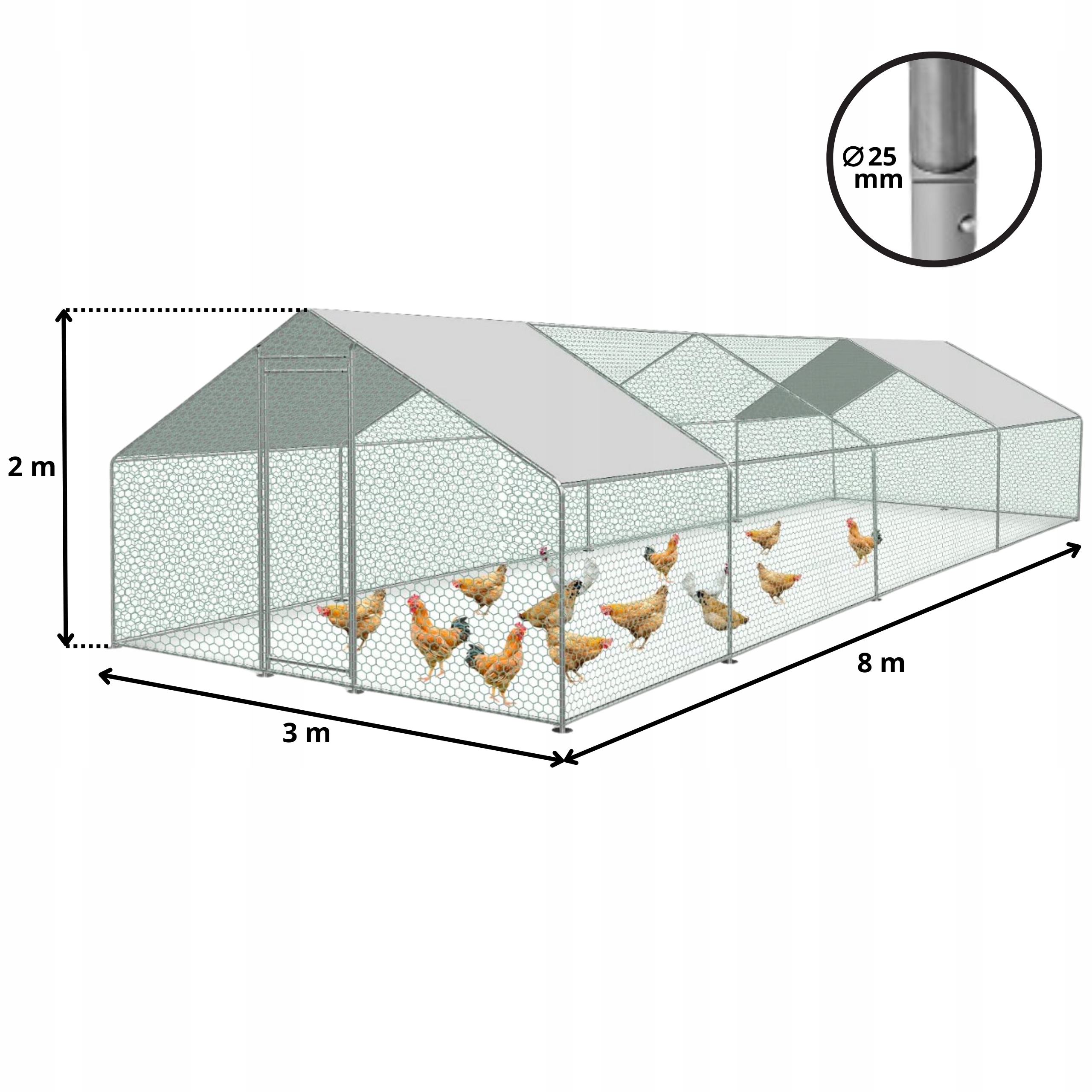 Materiał: Stal ocynkowana, galwanizowana siatka z drutu powlekana PCV, plandeka z polietylenu