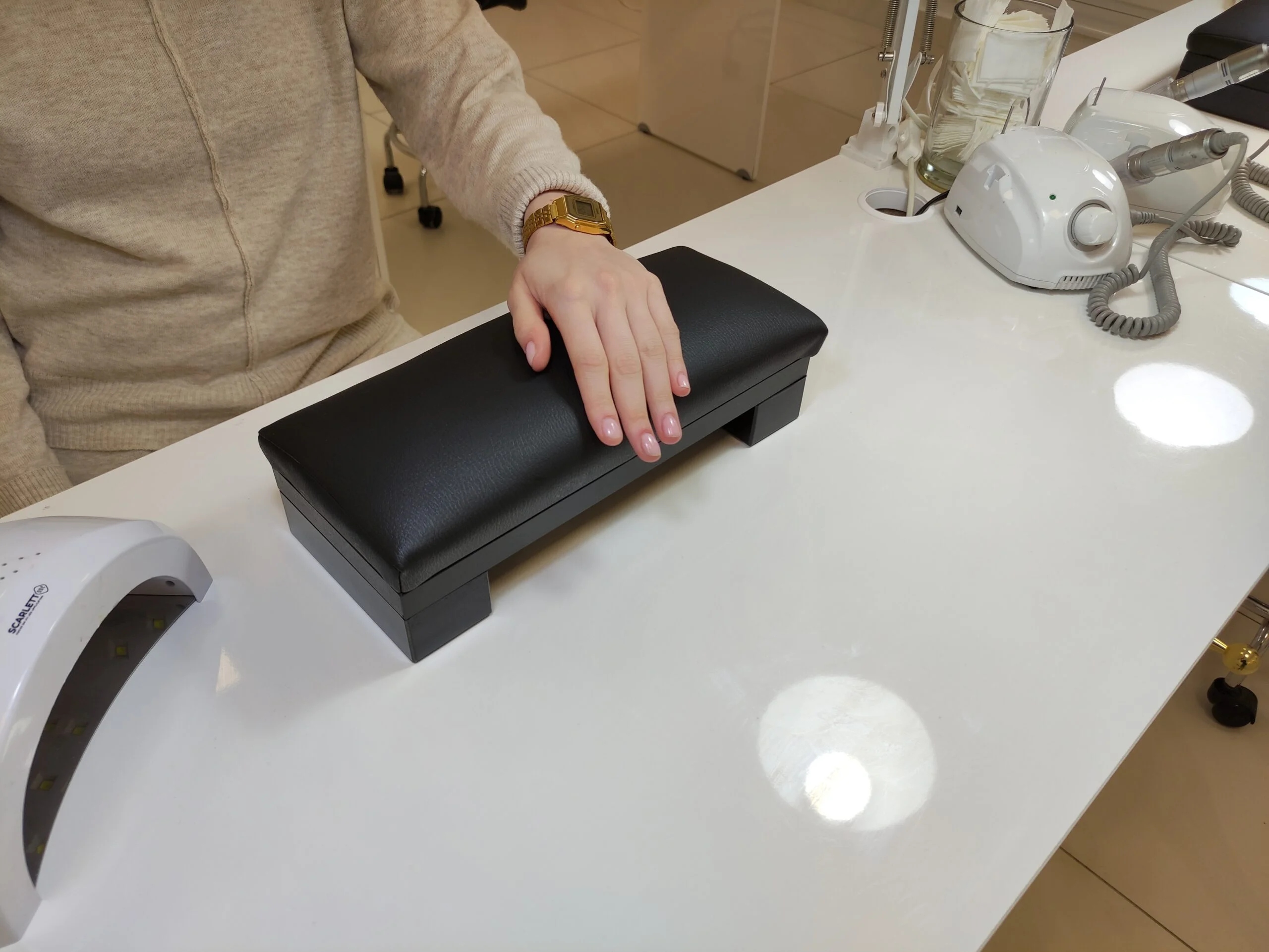- wygodna pozycja dla Klientki: nasza podpórka jest miękka, dostosowuje się do ręki, jest bardziej komfortowa niż zwykła gąbka do manicure;