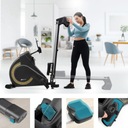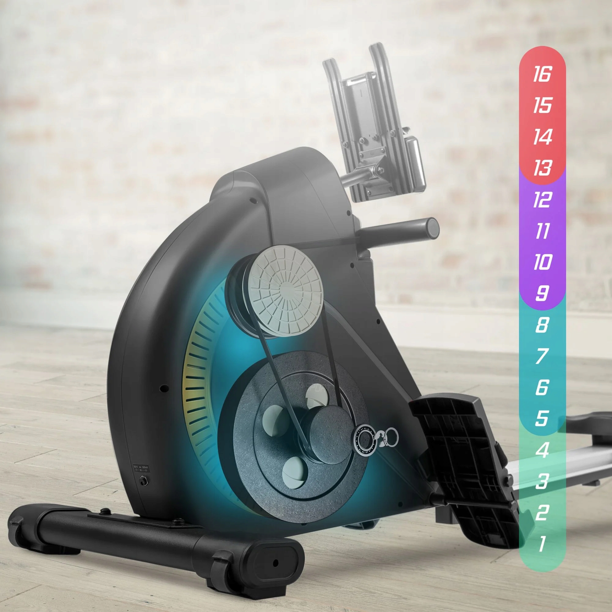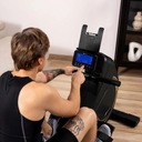 Wioślarz magnetyczny to doskonały sprzęt do wszechstronnego treningu wytrzymałościowego. Pomoże Ci wzmocnić mięśnie pleców, barków oraz nóg. Magnetyczny system oporu o wadze 16 kg zapewnia płynną pracę maszyny. Wielofunkcyjny komputerek treningowy z podstawką na urządzenie mobilne umożliwia urozmaicone ćwiczenia na różnych poziomach zaawansowania. Komfort użytkowania podnosi ergonomiczne siodełko oraz regulowane antypoślizgowe platformy na stopy z paskami zabezpieczającymi. Wioślarz wyposażony jest w system szybkiego składania oraz rolki transportowe, zapewniające pełną mobilność sprzętu. Maksymalna waga użytkownika wynosi 150 kg.