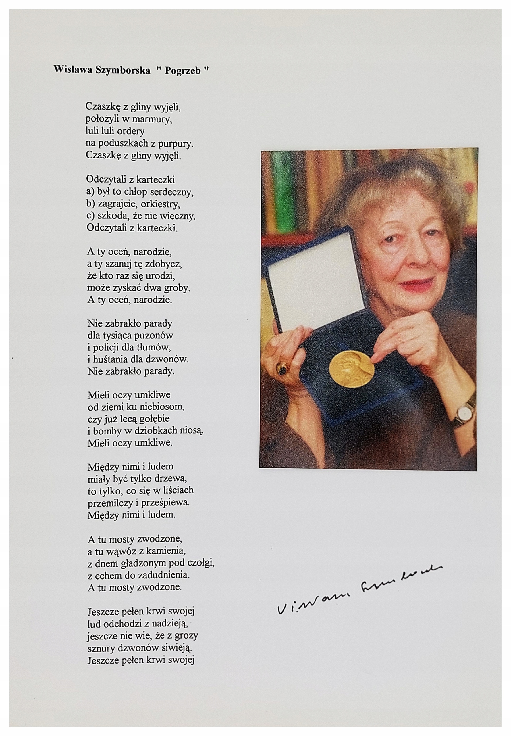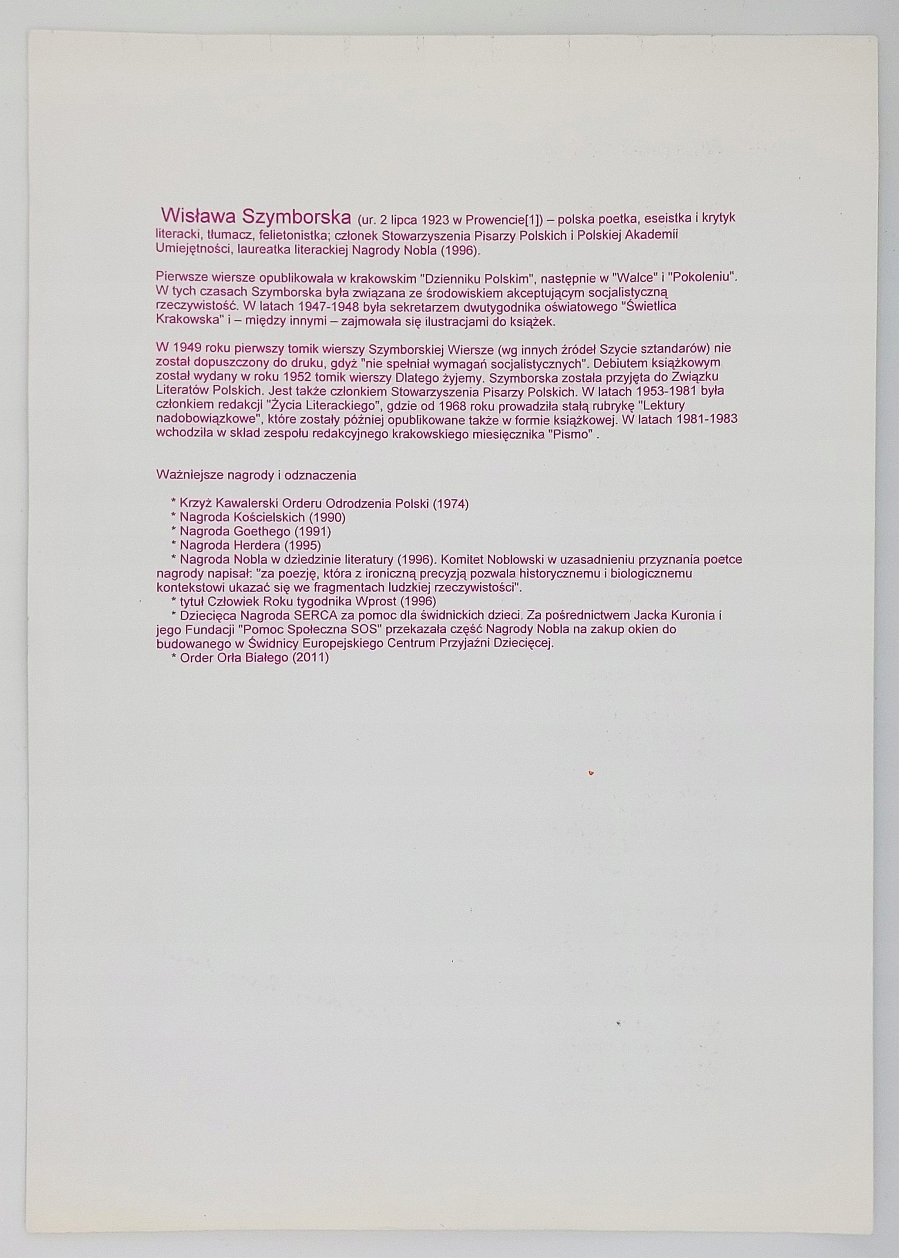 Стихотворение напечатано на толще бумаги. На листке со стихами была наклеена фотография лауреата Нобелевской премии. Сзади напечатано есть краткая биографическая записка.