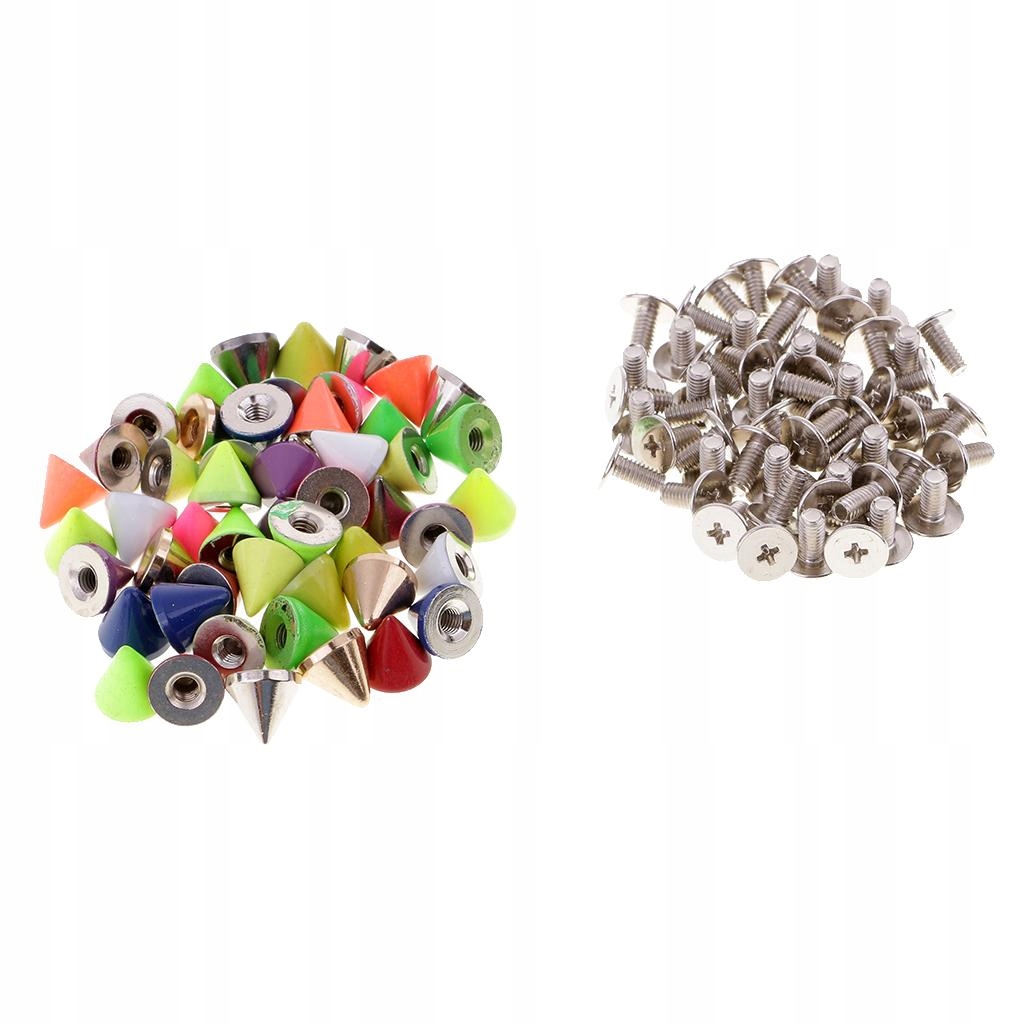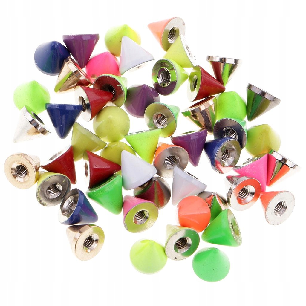 50 Pieces Colorful Cone Shape Rivets Studs Spikes for Leather Craft 8x7.5mm