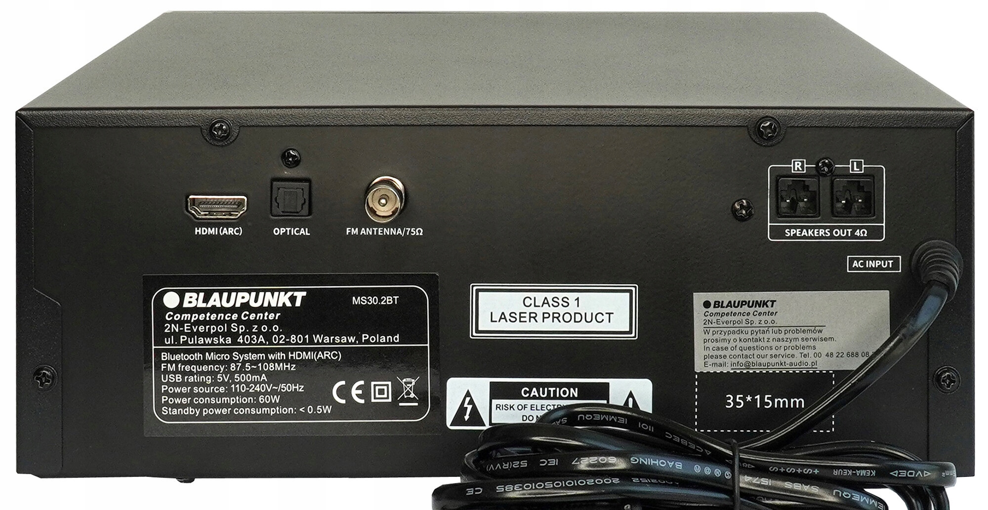 MS30.2BT BLACK to unowocześniona wersja znanego i cenionego modelu z oferty BLAUPUNKT MS30BT. Odświeżona wersja posiada lepszy wzmacniacz, mocniejszy o 5 Watt na kanał, co ma znaczące przełożenie na poprawę jakości dźwięku. Brzmienie zyskuje na dynamice, klarowności, większej ilości niskich i wysokich tonów a przede wszystkim uzyskujemy lepszy efekt stereofonii i przestrzeni. Zmieniony został także napęd CD, co skutkuje jeszcze szybszym działaniem i zwiększonym komfortem obsługi. Kluczową zmianą jest także dodanie funkcji TV AUDIO CONNECT – czyli złącze HDMI ARC oraz wejście optyczne, dzięki którym uzyskasz nowy wymiar dźwięku z twojego płaskiego telewizora lub konsoli do gier. Do dyspozycji oddajemy nowy, większy i bardziej czytelny wyświetlacz LED, a gdyby tego było jeszcze mało – dodaliśmy funkcję zegara z alarmem