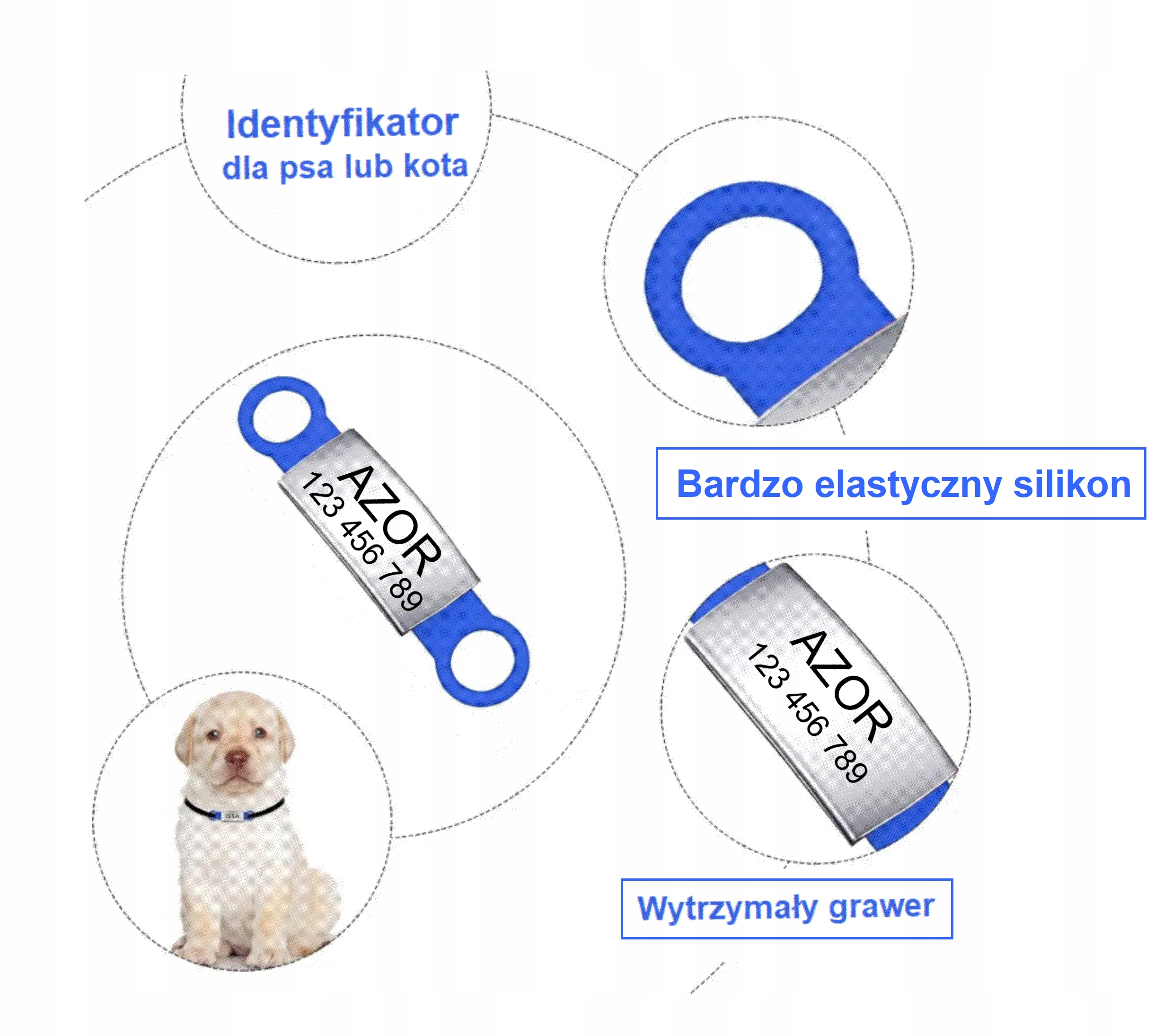Dzięki grawerowi z danymi kontaktowymi, osoba, która znajdzie zwierzaka, łatwo skontaktuje się z właścicielem, by pomóc mu wrócić do domu.