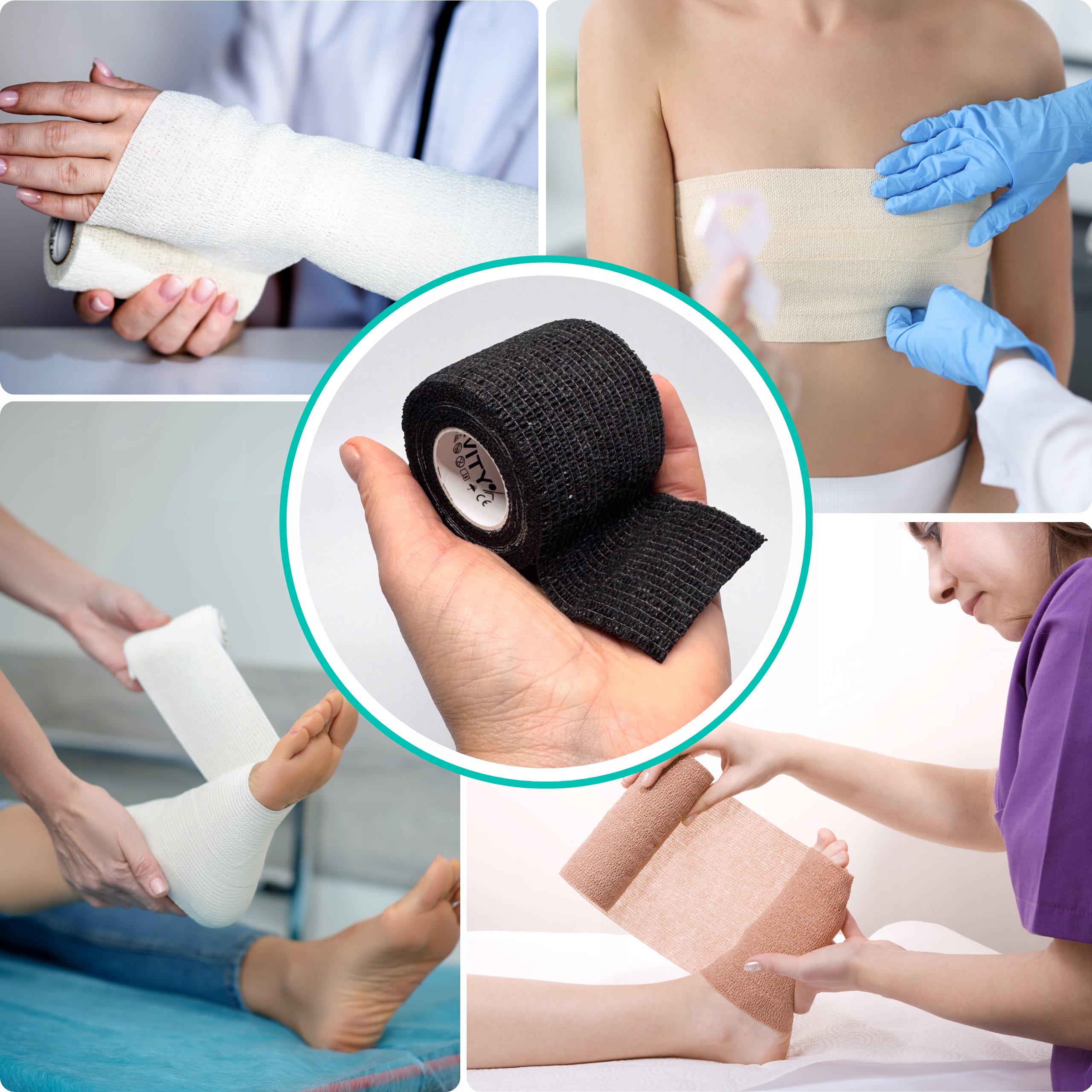 ✅ Korzyści ze stosowania: brak konieczności stosowania dodatkowych zapinek, możliwość stosowania w miejscach, gdzie zwykły bandaż mógłby nie być stabilny, odpowiedni również dla zwierząt (nie powoduje dyskomfortu), dzięki elastyczności dostosowuje się do ciała i nie ogranicza ruchów
