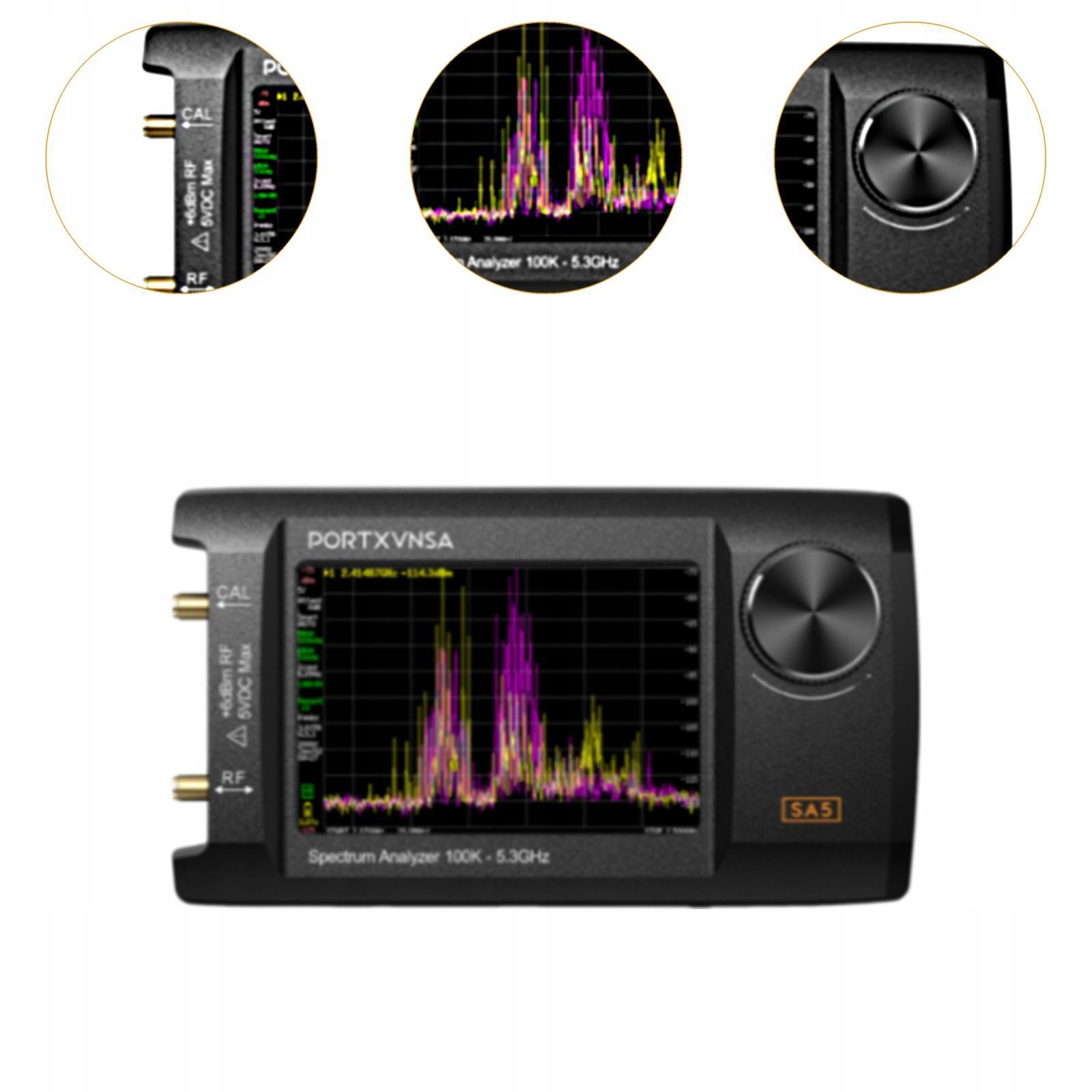 [Analizator]: Ten przenośny analizator częstotliwości został wyposażony w 4-calowy ekran wyświetlacza, który zapewnia wyraźne i szczegółowe odczyty w zakresie od 100 kHz do 5,3 GHz.