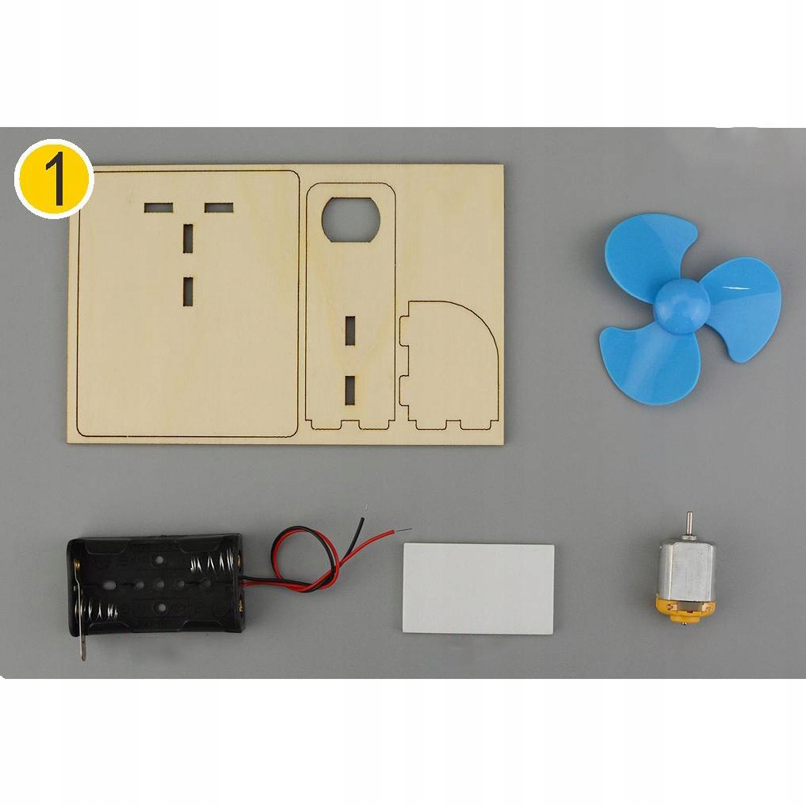 Zawartość opakowania: Drewniana deska x1, Łopatka wentylatora x1, Bateria, Klej piankowy x1, Silnik